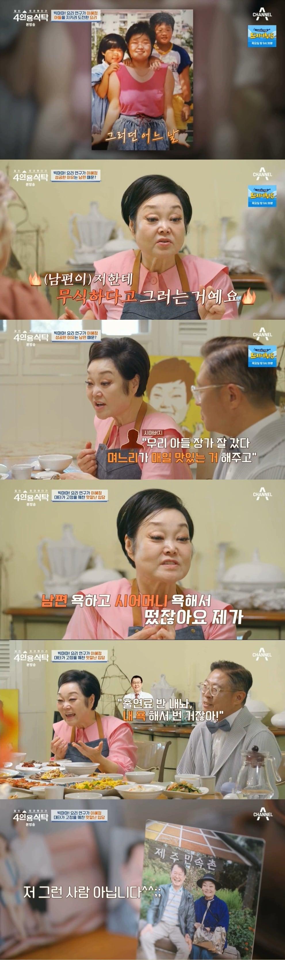 (채널A '4인용 식탁' 갈무리)(채널A '4인용 식탁' 갈무리)관련 키워드이혜정빅마마요리연구가이혜정고부갈등이혜정남편4인용식탁눈물신초롱 기자 신부 임신 잘 되게…몽둥이로 마구 때리는 중국 민속 풍습, 남편은 '팔짱'옆 환자 죽이고 '하이 파이브'…"병원서 나가고 싶어서"[CCTV 영상]주요 기사'개코와 이혼' 김수미 "다시 태어나면 스타와 결혼 NO"슈 "남편 임효성과 싸워 두 달째 연락 안 돼…화해하고 싶어"지상렬, '16세 연하' 신보람과 열애 인정 후 최초 동반 등장논란 여파? '도라이버' 등장 조세호, 수척해진 모습 눈길'비혼모' 사유리, 외국인 '남편들' 깜짝 공개…"AI로"