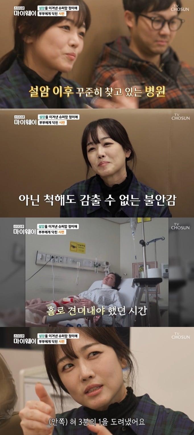(TV조선 '스타다큐 마이웨이' 갈무리)(TV조선 '스타다큐 마이웨이' 갈무리)관련 키워드정미애스타다큐마이웨이설암림프샘정미애암투병정미애암수술미스트롯신초롱 기자 신부 임신 잘 되게…몽둥이로 마구 때리는 중국 민속 풍습, 남편은 '팔짱'옆 환자 죽이고 '하이 파이브'…"병원서 나가고 싶어서"[CCTV 영상]주요 기사'개코와 이혼' 김수미 "다시 태어나면 스타와 결혼 NO"지상렬, '16세 연하' 신보람과 열애 인정 후 최초 동반 등장논란 여파? '도라이버' 등장 조세호, 수척해진 모습 눈길'비혼모' 사유리, 외국인 '남편들' 깜짝 공개…"AI로"44세 송혜교, 탄력 피부로 뽐낸 극강 미모…단발·긴머리 모두 소화