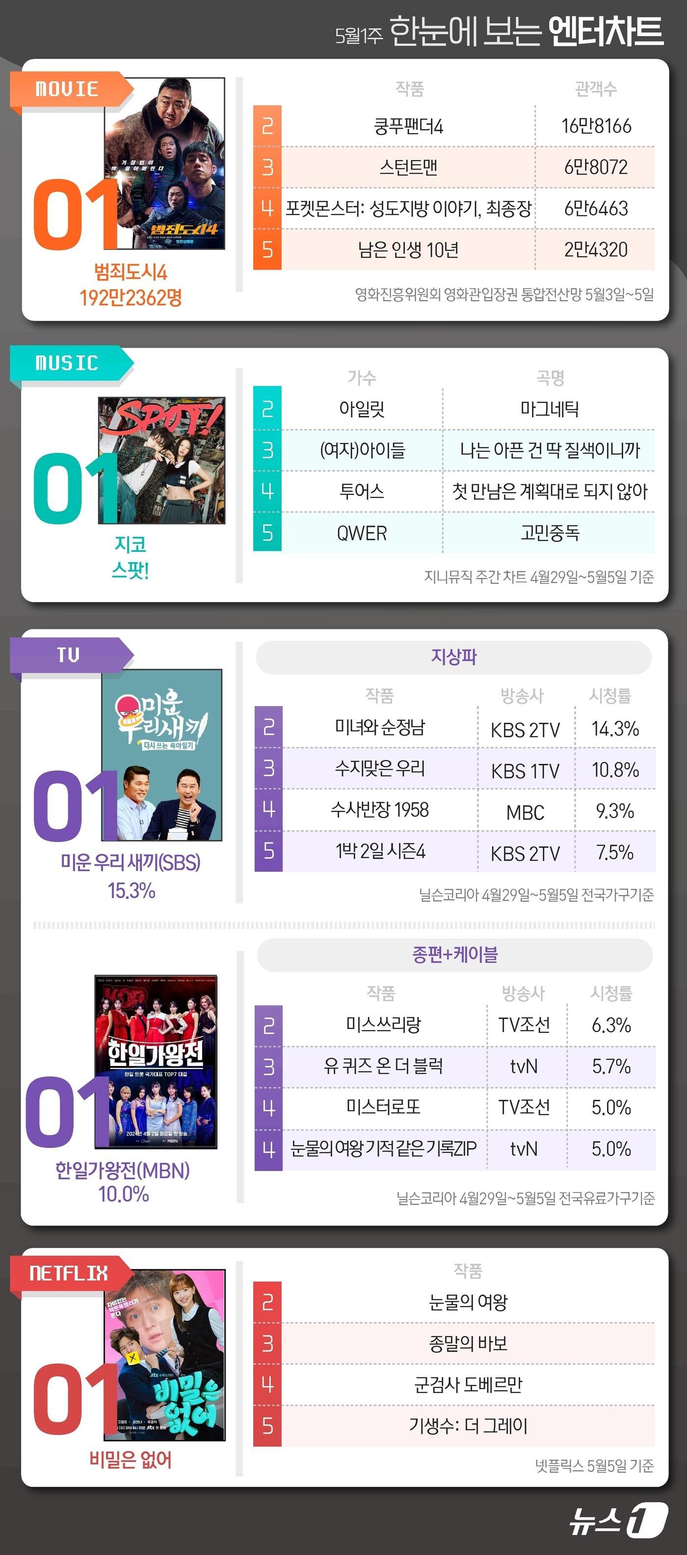 2024년 5월 첫째 주ⓒ News1 윤주희 디자이너관련 키워드한눈에보는엔터차트범죄도시4지코미우새한일가왕전비밀은없어안태현 기자 KT ENA, 북경미락붕기와 韓·中 문화예술 교류 위한 MOU 체결밴드 2Z, 14일 새 디싱 '6(SIX)' 발매…MV 티저 공개주요 기사지상렬 16세 연하 쇼호스트 신보람 열애, 방송용 아닌 진짜였다'이혼 후 3년' 강성연, 열애 깜짝 고백 "아이들 아껴주는 사람"다니엘, 뉴진스 퇴출 15일만에 밝힌 첫 심경…431억 소송전엔 침묵 [N이슈]최강록 상대는 누구…'흑백2' 스포 논란 속 대망의 결승전 디데이'배성재♥' 김다영, 단아한 한복 탈의하니 울퉁불퉁 등근육…반전