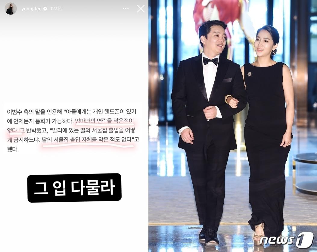 (이윤진 인스타그램 갈무리, ⓒ News1 DB)(이윤진 인스타그램 갈무리)관련 키워드이범수이윤진이범수이혼이윤진반박주요 기사지상렬 16세 연하 쇼호스트 신보람 열애, 방송용 아닌 진짜였다'이혼 후 3년' 강성연, 열애 깜짝 고백 "아이들 아껴주는 사람"다니엘, 뉴진스 퇴출 15일만에 밝힌 첫 심경…431억 소송전엔 침묵 [N이슈]최강록 상대는 누구…'흑백2' 스포 논란 속 대망의 결승전 디데이'배성재♥' 김다영, 단아한 한복 탈의하니 울퉁불퉁 등근육…반전