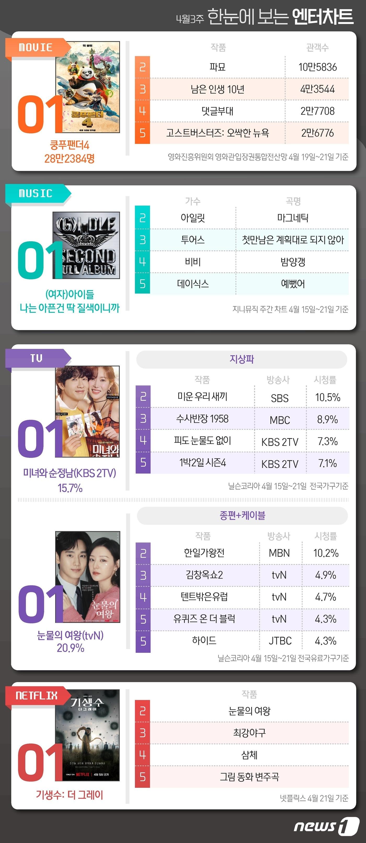 2024년 4월 셋째 주ⓒ News1 윤주희 디자이너관련 키워드한눈에보는엔터차트윤효정 기자 관훈클럽정신영기금 17대 이사장에 이강덕 KBS N 사장 선출'예스맨' PD "올림픽 이어 월드컵까지, 붙박이 예능 자리잡고파" [N현장]주요 기사조정석♥︎거미, 14일 둘째 득녀…"산모와 아이 모두 건강"류시원 19세 연하 아내 공개…연예인급 미모 대치동 일타강사'신세계家' 애니, 美 명문 컬럼비아대 복학…"학업·음악 작업 병행"정우성 '메이드인코리아' 연기 칭찬글 바이럴 의혹에 소속사 반응은63세 윤영미, 속옷 없이 등 훤히 트인 과감 패션…"서비스"