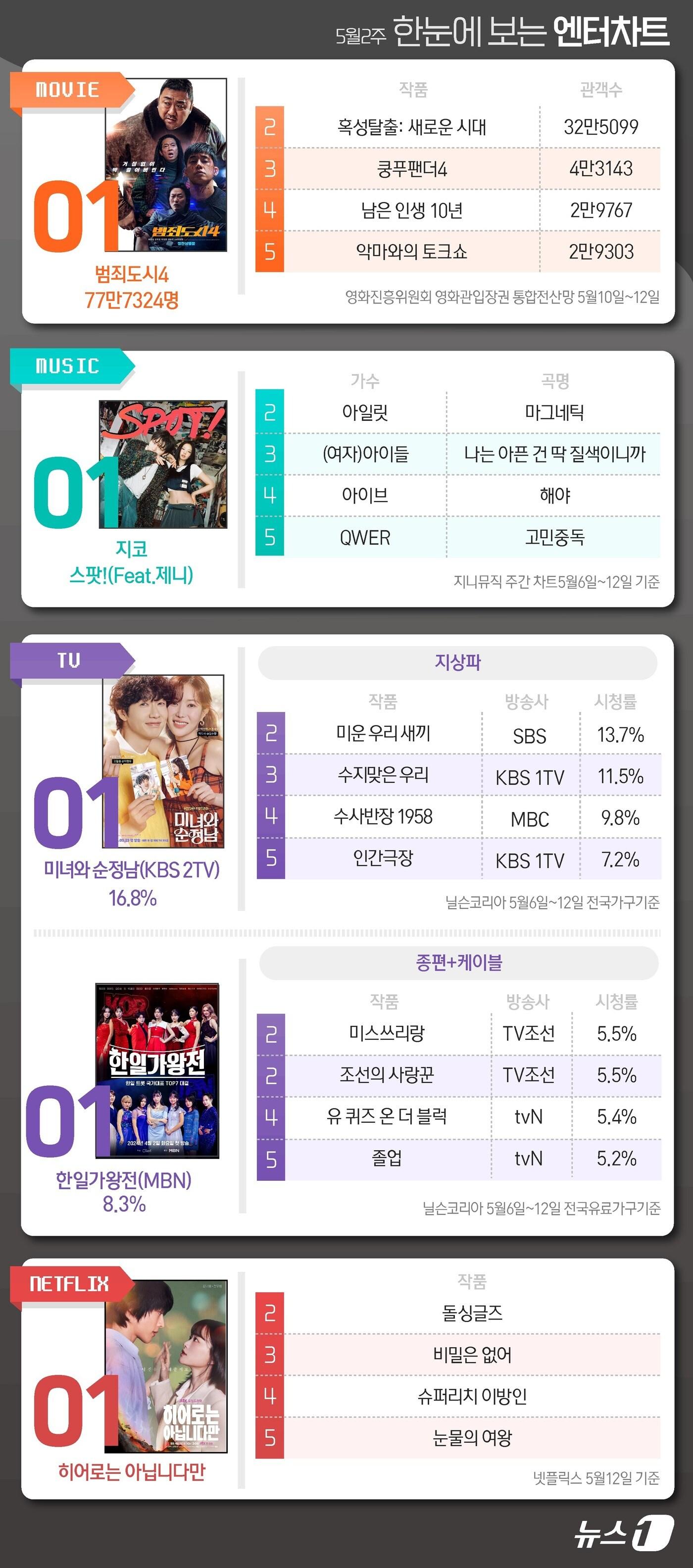 2024년 5월 둘째 주ⓒ News1 윤주희 디자이너관련 키워드범죄도시4지코미녀와순정남한일가왕전히어로는아닙니다만한눈에보는엔터차트안태현 기자 우찬·행주·머쉬베놈 다음은 누구…'쇼미12'로 다시 불 힙합 열풍 [N초점]다듀 개코·김수미, 15년 만에 이혼…"잘사는 줄 알았는데 안타까워"(종합)주요 기사'텐트생활' 박군, 한영과 결혼 4년만에 이혼설 입 열었다"성관계했지만 강제성 NO"…日 기획사 대표, 소속배우 성폭행 혐의 체포숀 펜, 38세 연하 모델 여친과 손잡고 데이트…애정전선 이상無오르가니스트 '나솔' 정숙, 서현 오케스트라 협연 특혜 논란에 일침51세 김정은, 여전히 우아한 미모…소유진도 "자꾸 더 예뻐져" 감탄