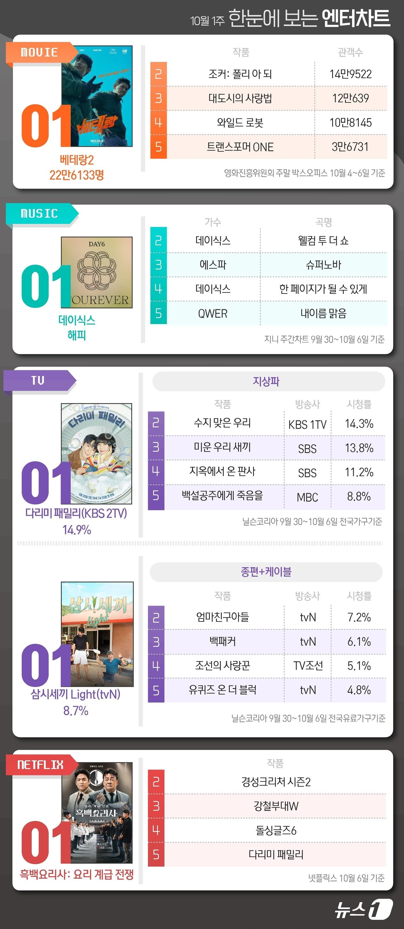 2024년 10월 첫째 주ⓒ News1 양혜림 디자이너관련 키워드한눈에보는엔터차트윤효정 기자 최강록, 요리괴물 꺾고 '흑백요리사2' 최종 우승…"더 열심히 음식 생각할 것"'MZ 김광석' 이지훈 vs '포스트 성시경' 홍승민, 레전드 발라드 대결주요 기사지상렬 16세 연하 쇼호스트 신보람 열애, 방송용 아닌 진짜였다'이혼 후 3년' 강성연, 열애 깜짝 고백 "아이들 아껴주는 사람"다니엘, 뉴진스 퇴출 15일만에 밝힌 첫 심경…431억 소송전엔 침묵 [N이슈]최강록 상대는 누구…'흑백2' 스포 논란 속 대망의 결승전 디데이'배성재♥' 김다영, 단아한 한복 탈의하니 울퉁불퉁 등근육…반전
