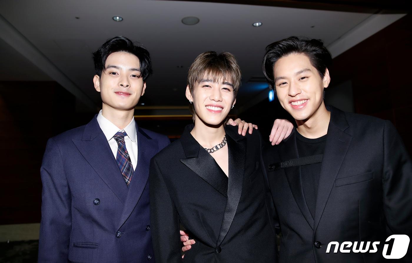 태국 배우 쿤 폴(퐁폴 판야밋, Khunpol), 피피(끄릿 암누아이데차콘, Krit Amnuaydechkorn), 빌킨(푸티퐁 아싸라타나쿨, Putthipong Assaratanakul)이 20일 서울 한 호텔에서 열린 기자간담회에 앞서 포즈를 취하고 있다. 2021.10.20/뉴스1 ⓒ News1 권현진 기자