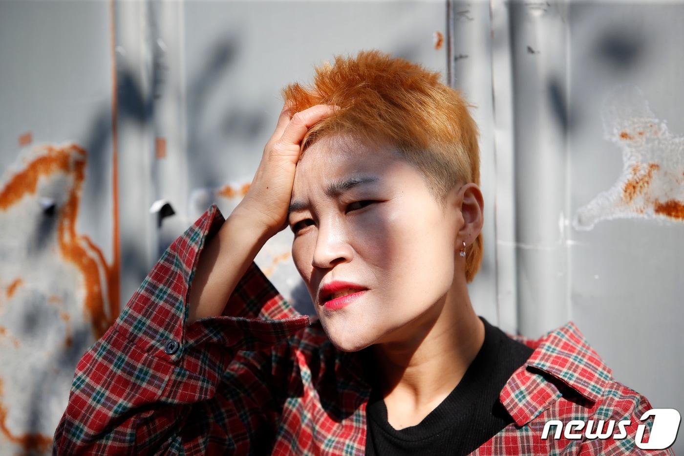 개그우먼 김혜선이 22일 서울 상암동 인근에서 열린 뉴스1과의 인터뷰에 앞서 포즈를 취하고 있다. 2021.10.22/뉴스1 ⓒ News1 권현진 기자