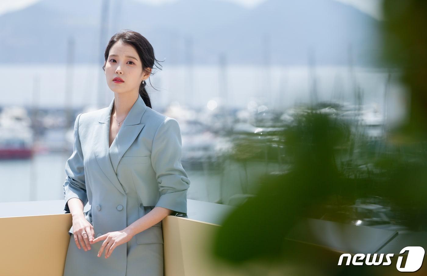 배우 이지은(아이유)이 25일(현지시간) 제75회 칸 국제영화제가 열리고 있는 프랑스 남부 칸 '팔레 데 페스티벌(Palais des Festivals)' 살롱 데 앙바사되르(Salon des Ambassadeurs)에서 경쟁부문 진출작 '브로커' 인터뷰 촬영을 하고 있다. 2022.5.27/뉴스1 ⓒ News1 이준성 프리랜서기자