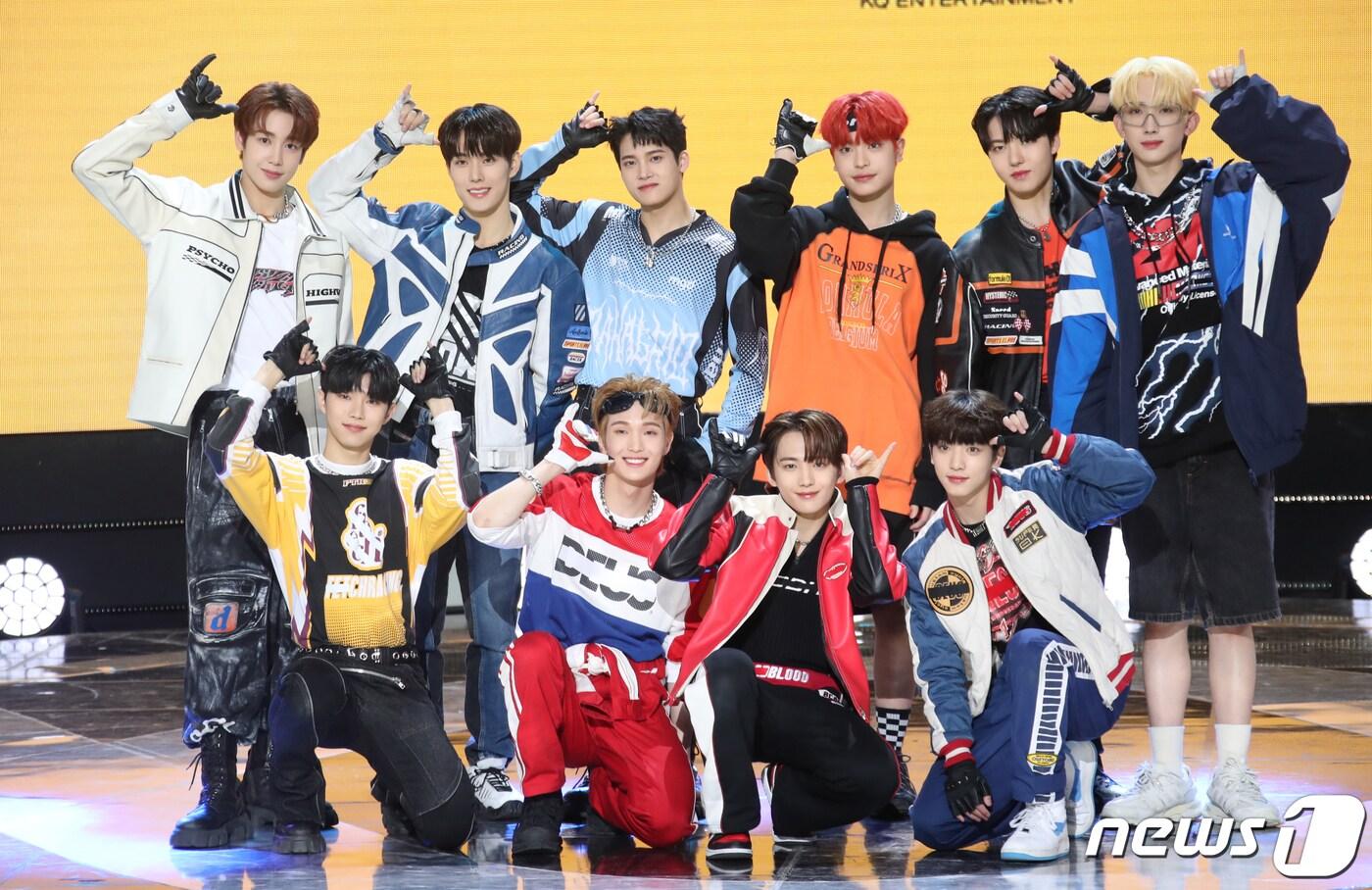 그룹 싸이커스(xikers) 헌터(왼쪽부터), 진식, 현우, 수민, 민재, 유준, 준민, 예찬, 정훈, 세은이 29일 오후 서울 마포구 SBS프리즘타워에서 가진 첫 번째 미니앨범 ‘하우스 오브 트리키 : 도어벨 링잉(HOUSE OF TRICKY : Doorbell Ringing)'발매 기념 쇼케이스에서 포즈를 취하고 있다. 2023.3.29/뉴스1 ⓒ News1 권현진 기자