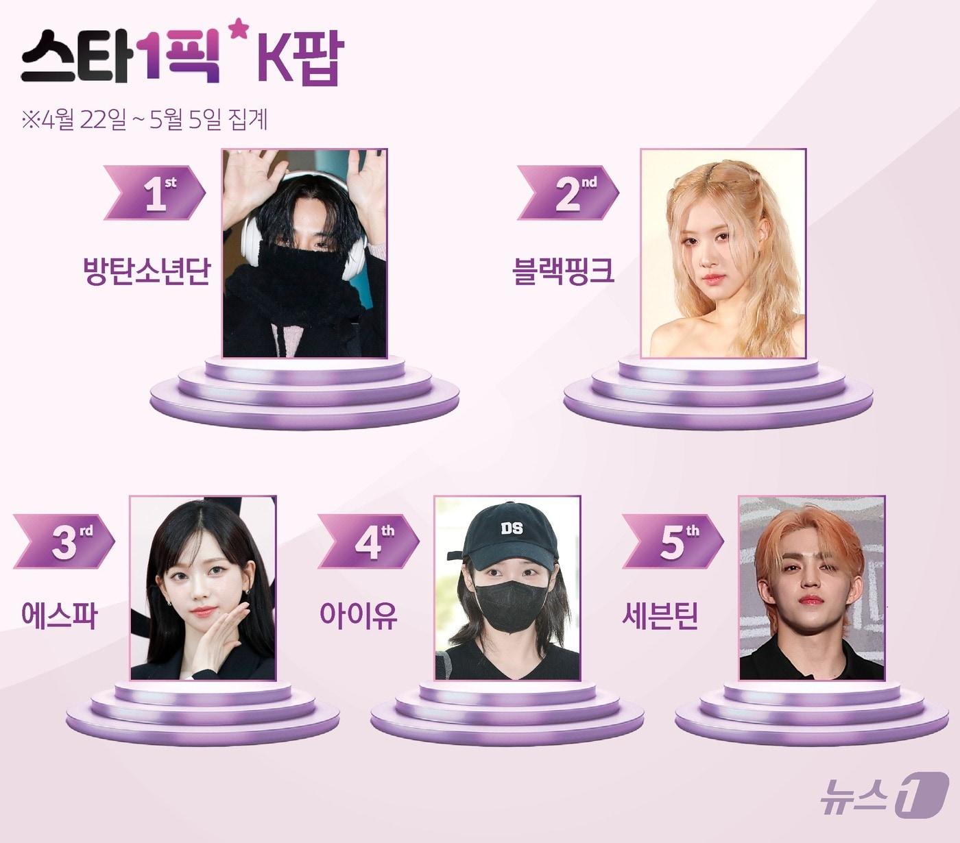 편집자주 ...K팝 아이돌은 어느덧 글로벌 대세로 우뚝 섰습니다. K트로트 가수들 역시 그 어느 때 보다 많은 사랑을 받고 있습니다. 이에 뉴스1은 이들의 생생한 사진, 최신 기사, 화제 동영상을 한 곳에서 만날 수 있는 원스톱 플랫폼 [스타1픽]을 신설했습니다. 뉴스1은 [스타1픽]과 관련해 'K팝 아이돌'과 'K팝 트로트 스타' 중 최근 2주간 가장 많은 관심을 받은 사진의 주인공들을 1~5위까지 소개하는 [스타1픽-K팝] 및 [스타1픽-K트로트] 코너도 마련, 팬들에 최신 정보와 최고의 즐거움을 함께 제공하고자 합니다.