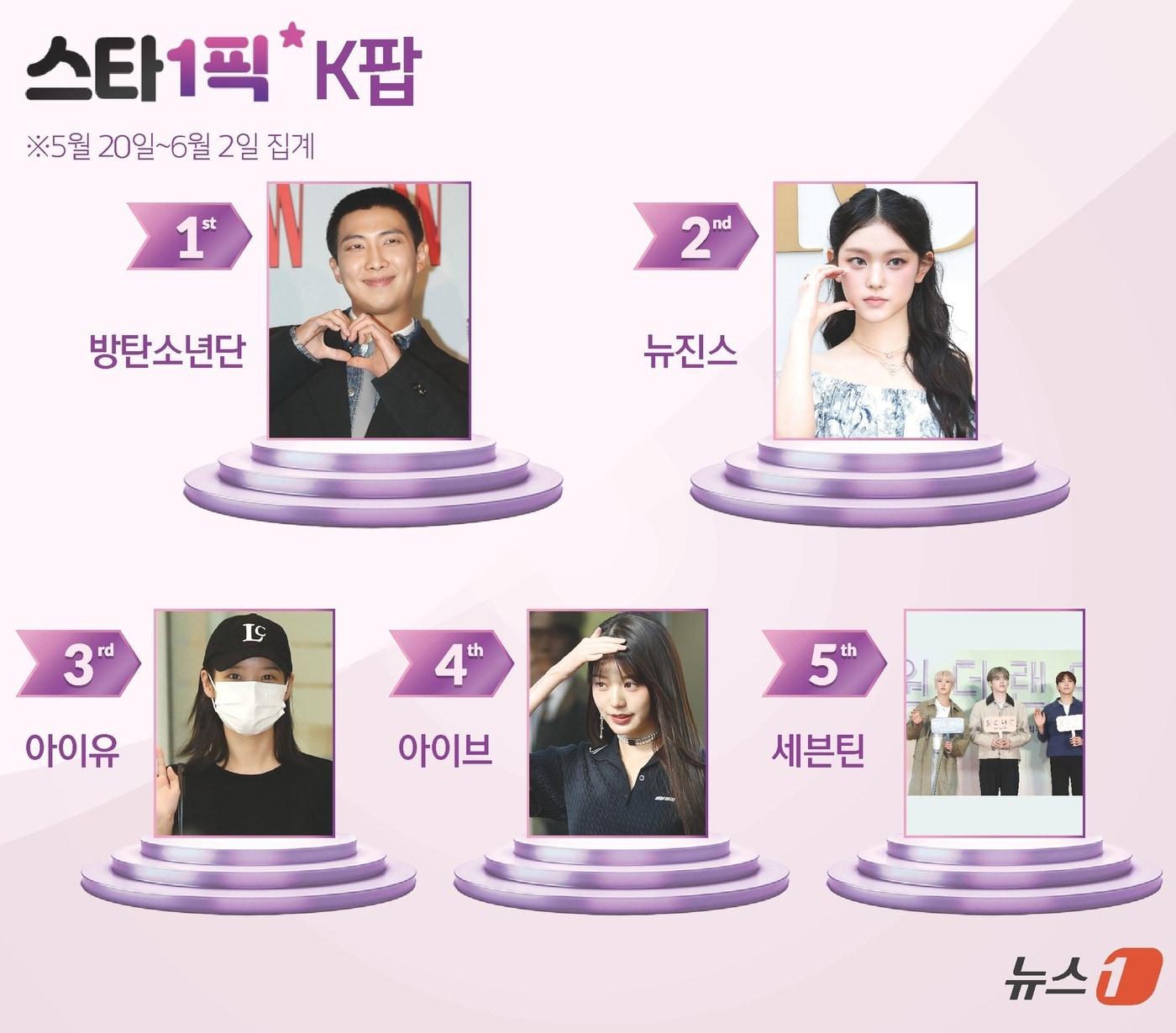 편집자주 ...K팝 아이돌은 어느덧 글로벌 대세로 우뚝 섰습니다. K트로트 가수들 역시 그 어느 때 보다 많은 사랑을 받고 있습니다. 이에 뉴스1은 이들의 생생한 사진, 최신 기사, 화제 동영상을 한 곳에서 만날 수 있는 원스톱 플랫폼 [스타1픽]을 신설했습니다. 뉴스1은 [스타1픽]과 관련해 'K팝 아이돌'과 'K팝 트로트 스타' 중 최근 2주간 가장 많은 관심을 받은 사진의 주인공들을 1~5위까지 소개하는 [스타1픽-K팝] 및 [스타1픽-K트로트] 코너도 마련, 팬들에 최신 정보와 최고의 즐거움을 함께 제공하고자 합니다.