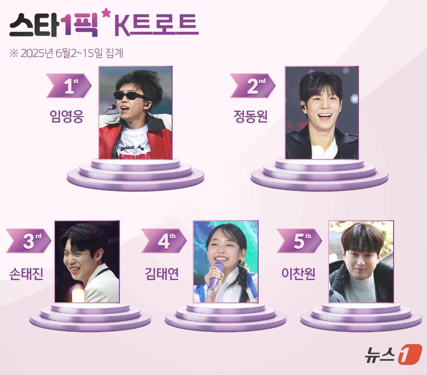 편집자주 ...K팝 아이돌은 어느덧 글로벌 대세로 우뚝 섰습니다. K트로트 가수들 역시 그 어느 때 보다 많은 사랑을 받고 있습니다. 이에 뉴스1은 이들의 생생한 사진, 최신 기사, 화제 동영상을 한 곳에서 만날 수 있는 원스톱 플랫폼 [스타1픽]을 신설했습니다. 뉴스1은 [스타1픽]과 관련해 'K팝 아이돌'과 'K팝 트로트 스타' 중 최근 2주간 가장 많은 관심을 받은 사진의 주인공들을 1~5위까지 소개하는 [스타1픽-K팝] 및 [스타1픽-K트로트] 코너도 마련, 팬들에 최신 정보와 최고의 즐거움을 함께 제공하고자 합니다.