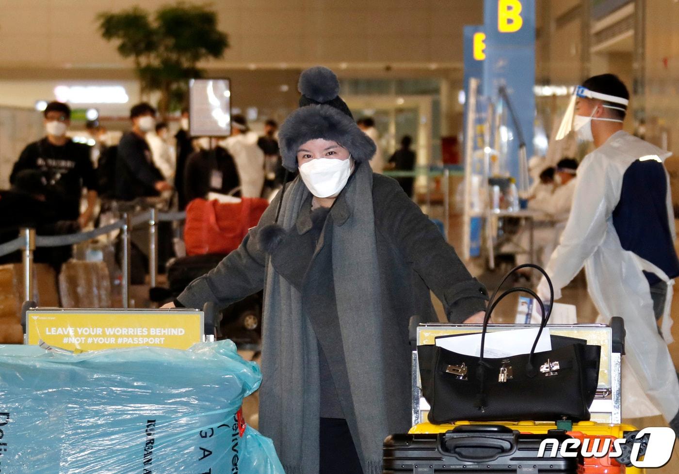 방송인 에이미가 20일 인천국제공항을 통해 중국 광저우에서 입국하고 있다. 미국 시민권자인 에이미는 지난 2015년 12월 말 한국에서 미국으로 강제 출국했다. 당시 에이미는 프로포폴 투약 및 불법적으로 졸피뎀을 복용한 혐의 등이 지속되며 법원으로부터 강제 추방 명령을 받았다. 입국 금지 기간은 5년이었으며, 기간이 만료돼 이번에 한국에 입국하는 것으로 알려졌다. 에이미는 한국 도착 뒤 2주간의 자가 격리를 한 뒤 가족들을 만날 것으로 전해졌다. 한편 에이미는 한국 입국 금지 기간이던 지난 2017년 10월, 주 LA 대한민국 총영사관의 승인을 받은 뒤 남동생의 결혼식에 참석하기 위해 일시 입국한 바 있다. 2021.1.20/뉴스1 ⓒ News1 권현진 기자