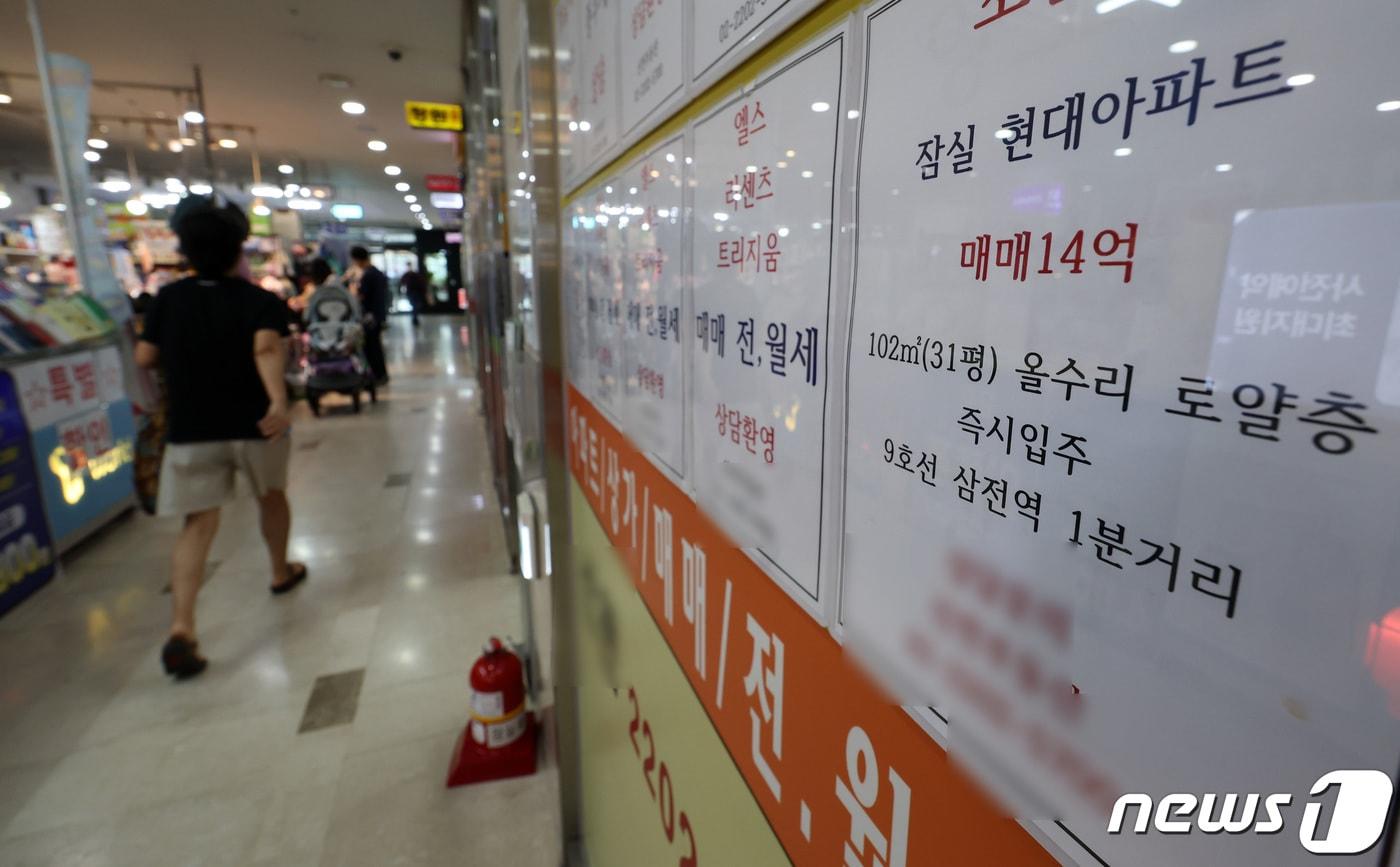 서울 송파구의 한 부동산중개업소에 아파트 매물 안내문이 게시돼 있다. 2023.9.27/뉴스1 ⓒ News1 김성진 기자