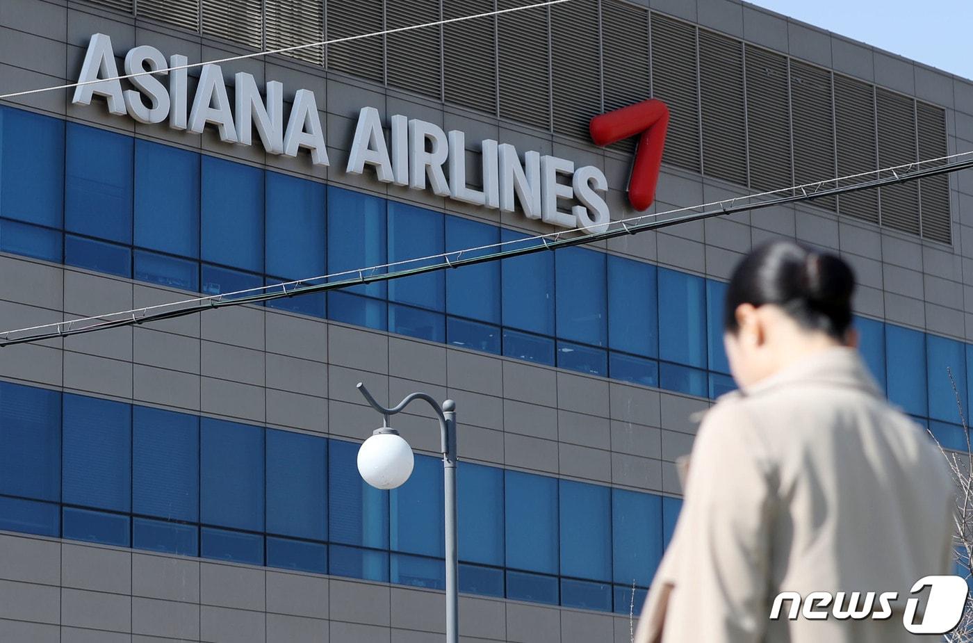15일 오후 서울 강서구 아시아나항공 본사에서 아시아나항공 본사 앞에서 관계자가 드나들고 있다. 금호아시아나그룹(금호그룹)이 유동성 위기를 해결하기 위해 아시아나항공을 매각하기로 결정했다. 아시아나항공 주채권은행인 산업은행은 이날 "금호 측이 아시아나항공의 매각이 포함된 수정 자구계획을 제출했다"고 밝혔다. 2019.4.15/뉴스1 ⓒ News1 박세연 기자