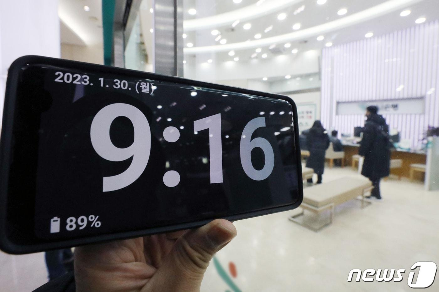 은행 영업 시작 시간이 기존 오전 9시30분에서 9시로 복원된 30일 서울의 한 은행 영업점으로 고객들이 들어서고 있다. 2023.1.30/뉴스1 ⓒ News1 민경석 기자