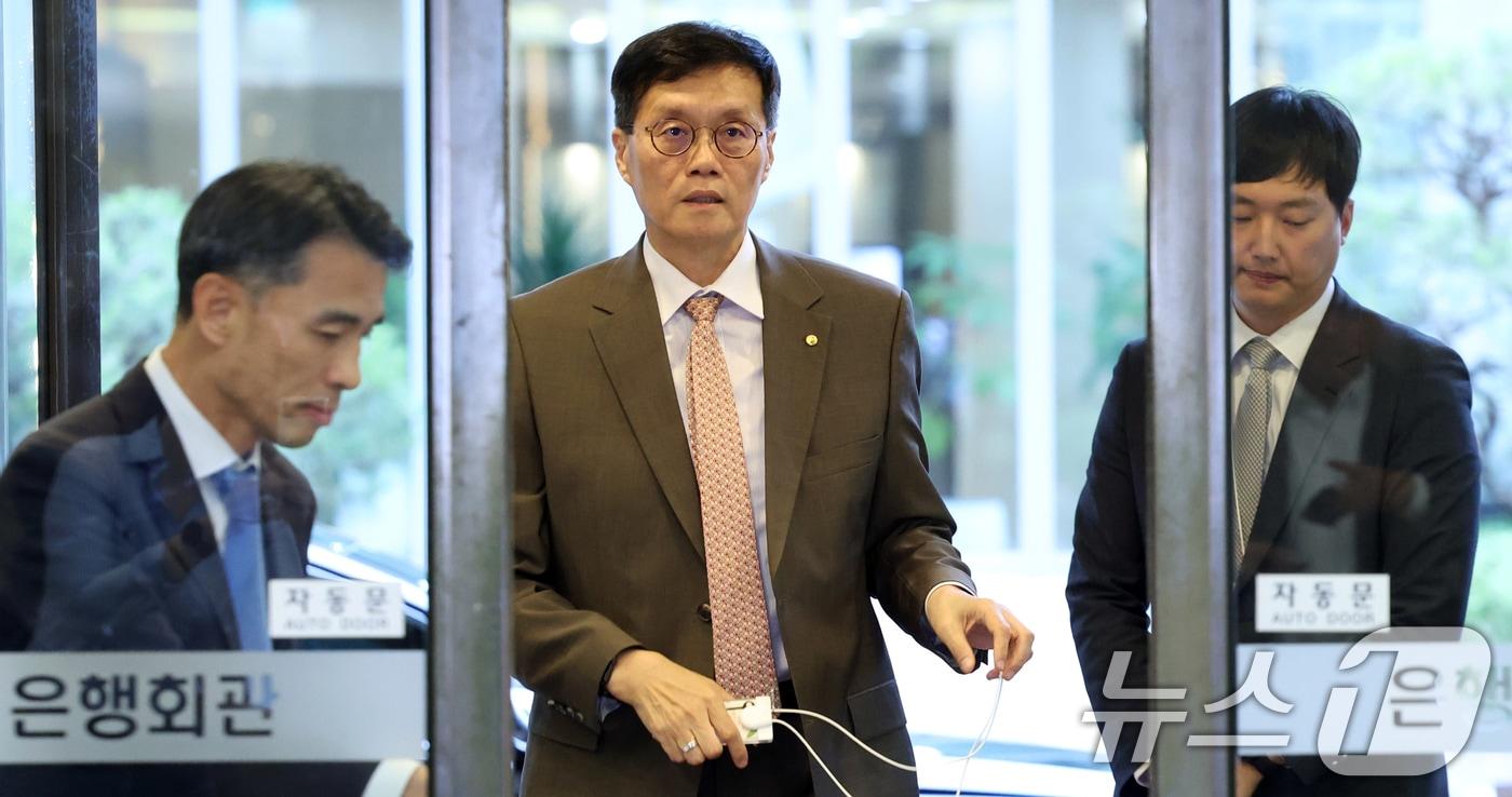 이창용 한국은행 총재가 지난해 5월 27일 오후 서울 중구 명동 은행회관에서 시중은행장들과 회동을 하기 위해 이동하고 있다.(자료사진) 2024.5.27/뉴스1 ⓒ News1 김명섭 기자