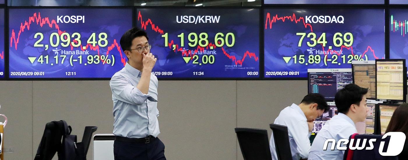코로나19 재확산 우려 영향으로 29일 코스피 지수가 2100선이 무너지며 하락했다. 2020.6.29/뉴스1 ⓒ News1 박지혜 기자