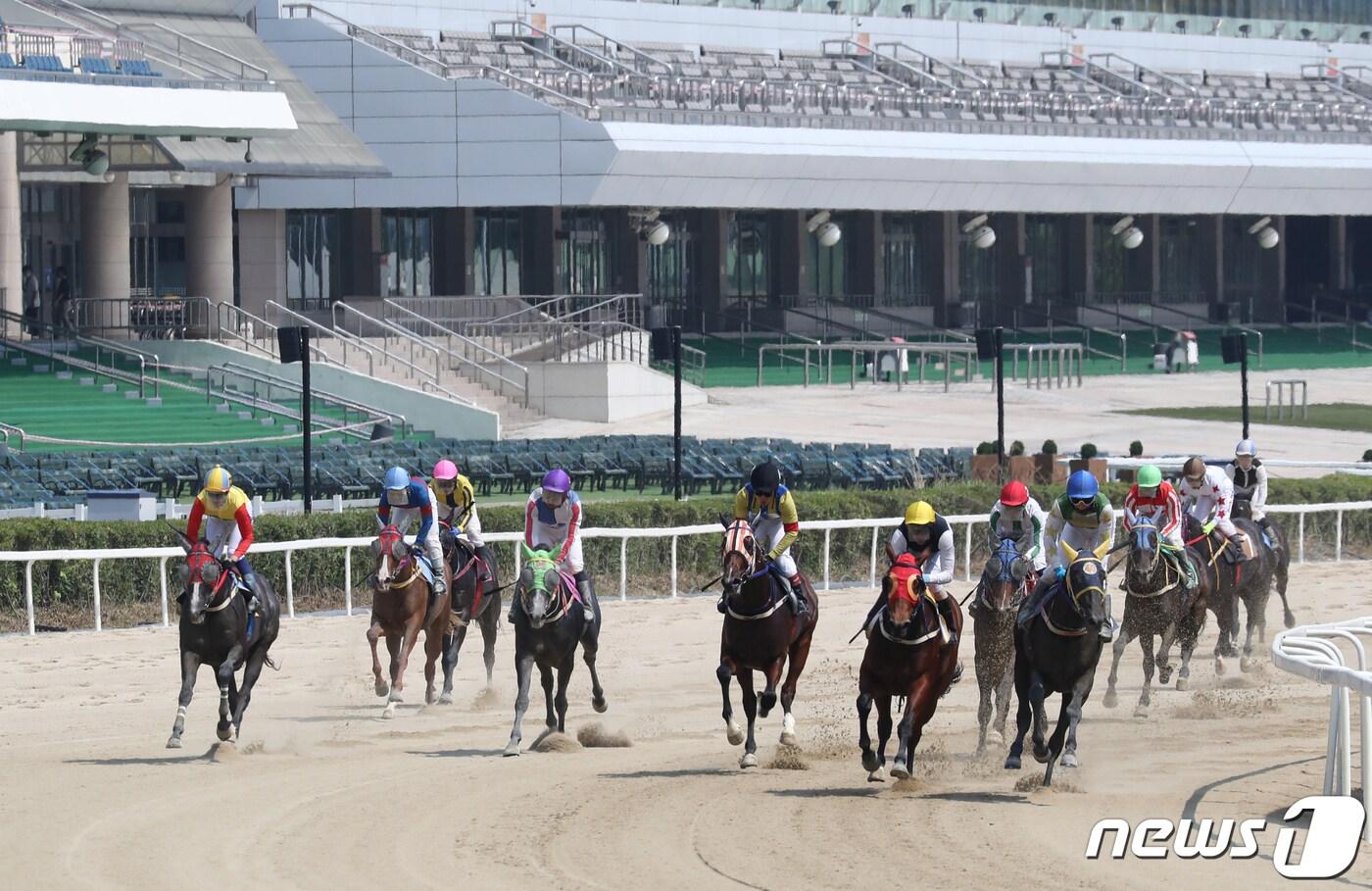 경기 과천 렛츠런파크에서 진행 중인 경마./뉴스1 ⓒ News1 송원영 기자