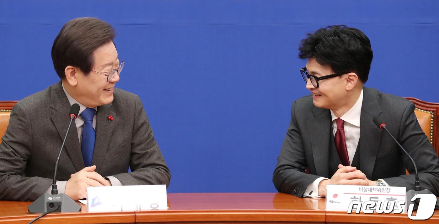 한동훈 국민의힘 비상대책위원장과 이재명 더불어민주당 대표가 29일 서울 여의도 국회 민주당 대표실에서 회동을 하고 있다. (공동취재) 2023.12.29/뉴스1 ⓒ News1 ,송원영 기자관련 키워드아가방앤컴퍼니제로투세븐꿈비삼성출판사헝셩그룹깨끗한나라핫종목문혜원 기자 거래소 내년 말 '하루 24시간 거래' 로드맵 가동…현장은 '부담''외인·기관 쌍끌이' 삼성전자, 사상 최고가…'15만전자' 눈앞[핫종목]