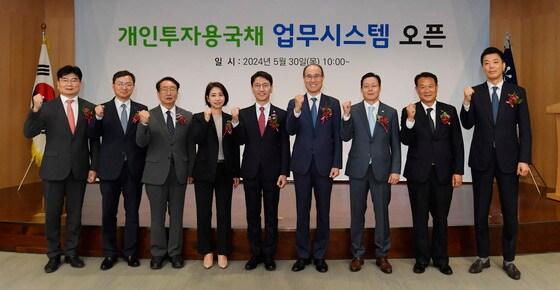 30일 오전 서울 영등포구 한국예탁결제원에서 열린 '개인투자용 국채 업무시스템 오픈 행사'에서 김윤상 기획재정부 차관(왼쪽 다섯 번째) 등 참석자들이 파이팅을 외치고 있다. 내달부터 발행하는 개인투자용 국채는 판매대행기관인 미래에셋증권의 영업점을 방문하거나 동 대행기관 웹사이트 또는 모바일앱을 통해 전용계좌를 개설한 후 구입할 수 있다. 1인당 최소 10만 원부터 연간 1억 원까지 구매 가능하다.(기획재정부 제공)관련 키워드미래에셋증권문혜원 기자 '역대 최대' 서학개미 47조원 순매수…기아 시총만큼 사들였다신한자산운용 "성과 검증된 자산으로 펀드 자금 쏠릴 것"관련 기사박현주 회장 장남, 내년부터 그룹 핵심 미래에셋증권서 일한다'기관'이 올린 코스피, '개인'이 살린 코스닥…'게임 체인저'는 외국인내년 개인투자용 국채 2조 원 발행…1월엔 1400억 원김정주가 찜한 코빗, 박현주가 키우나…미래에셋의 '큰 그림'미래에셋, 4위 가상자산 거래소 '코빗' 인수 추진