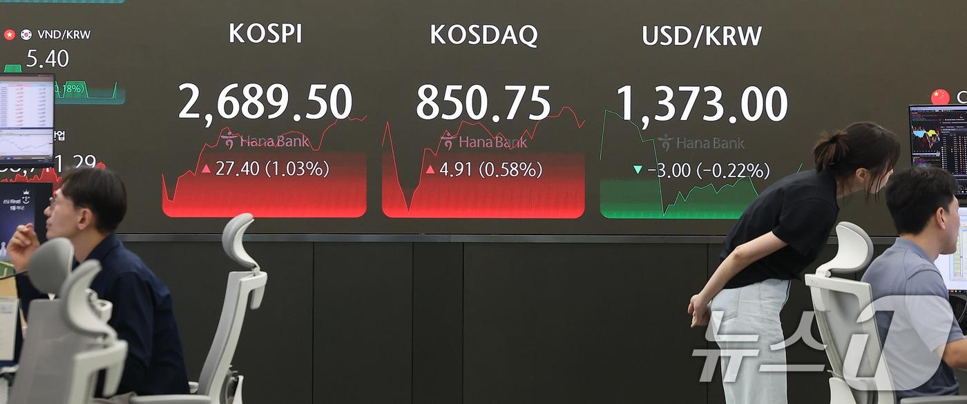 외국인 1.54조원 '폭풍 순매수'…개인은 1.40조원 순매도"美 CPI 상승률 둔화…인플레 완화에 시장금리 하락 영향"5일 오후 서울 중구 하나은행 딜링룸에서 직원들이 업무를 보고 있다. 이날 코스피는 전 거래일 대비 27.40포인트(p)(1.03%) 오른 2689.50, 코스닥은 4.91p(0.58%) 오른 850.75로 마감했다. 원·달러 환율은 전날보다 3.00원 내린 1375.0원에 마감됐다. 2024.6.5/뉴스1 ⓒ News1 김진환 기자ⓒ News1 윤주희 디자이너관련 키워드삼성전자SK하이닉스김정현 기자 "소버린 AI 원조" 네이버, '국대 AI' 1차 탈락…거센 후폭풍네이버, 한화생명 e스포츠 프로게임단 스폰서십 계약 체결관련 기사미국 최대 D램 업체 마이크론 또 8% 폭등"오늘도 올랐다"…코스피 11거래일 연속 최고치, '시총 첫 4000조' 돌파 [시황종합]“지금이라도 메모리 반도체에 베팅하라”-블룸버그트럼프, 또 '반도체 관세' 예고…K-반도체, 추가 투자 압박 우려“TSMC 랠리로 코스피 11일 연속 신고가 행진”-블룸버그