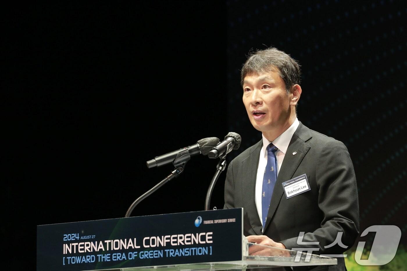 이복현 금융감독원장이 27일 오전 서울 서대문구 이화여자대학교에서 '‘녹색전환 시대를 향하여'라는 주제로 열린 국제 컨퍼런스에서 개회사를 하고 있다. (금융감독원 제공) 2024.8.27/뉴스1