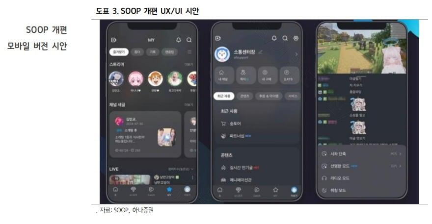 (출처=하나증권 리포트)관련 키워드SOOP문혜원 기자 '역대 최대' 서학개미 47조원 순매수…기아 시총만큼 사들였다신한자산운용 "성과 검증된 자산으로 펀드 자금 쏠릴 것"관련 기사SOOP, 프로게임단 'DN 수퍼스' 출정식 1월 3일 개최배그나, 소향 '가슴만 알죠' 리메이크…29일 발매SOOP '플랫폼통합·AI 고도화·콘텐츠 제휴' 신년 3대 사업 키워드 제시"스트리머 자리 비워도 AI가 방송"…SOOP '쌀사 2.0' 공개SOOP, '2025 스트리머 대상' 개최…이용자 참여 이벤트도 마련
