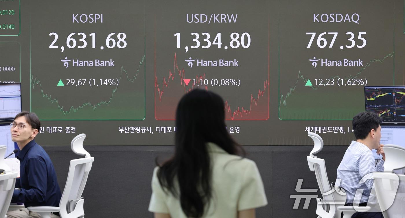 24일 오후 서울 중구 하나은행 딜링룸 전광판에 코스피 지수가 나타나고 있다. 2024.9.24/뉴스1 ⓒ News1 신웅수 기자