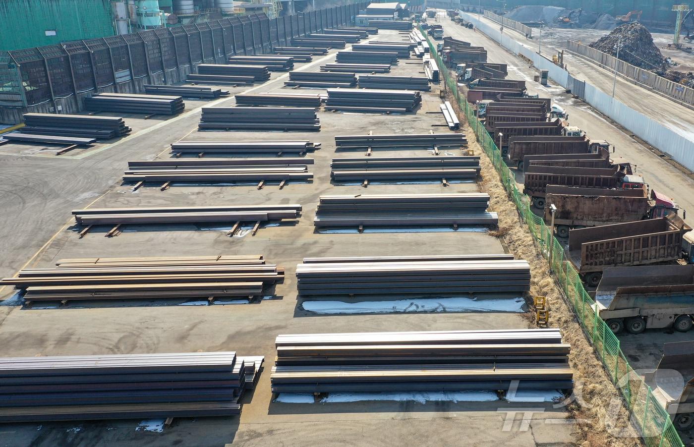 11일 인천의 한 제철공장에 철근이 쌓여 있다. 2025.2.11/뉴스1 ⓒ News1 김도우 기자