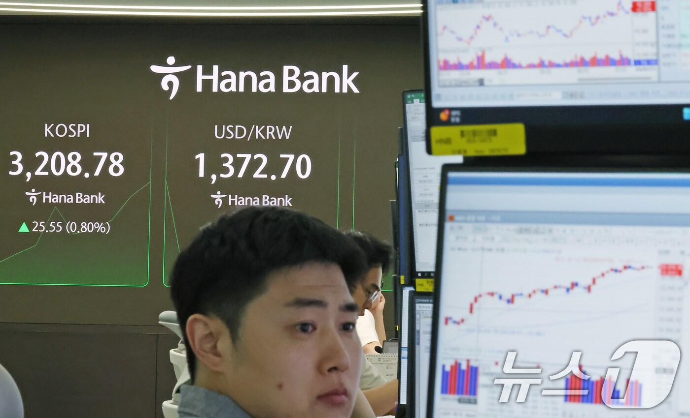 11일 오전 서울 중구 하나은행 딜링룸에 코스피와 원달러환율이 표시되고 있다. 코스피 3200선 돌파는 지난 2021년 9월 6일(장중 3206.25) 이후 약 3년 10개월 만이다. ⓒ News1 장수영 기자