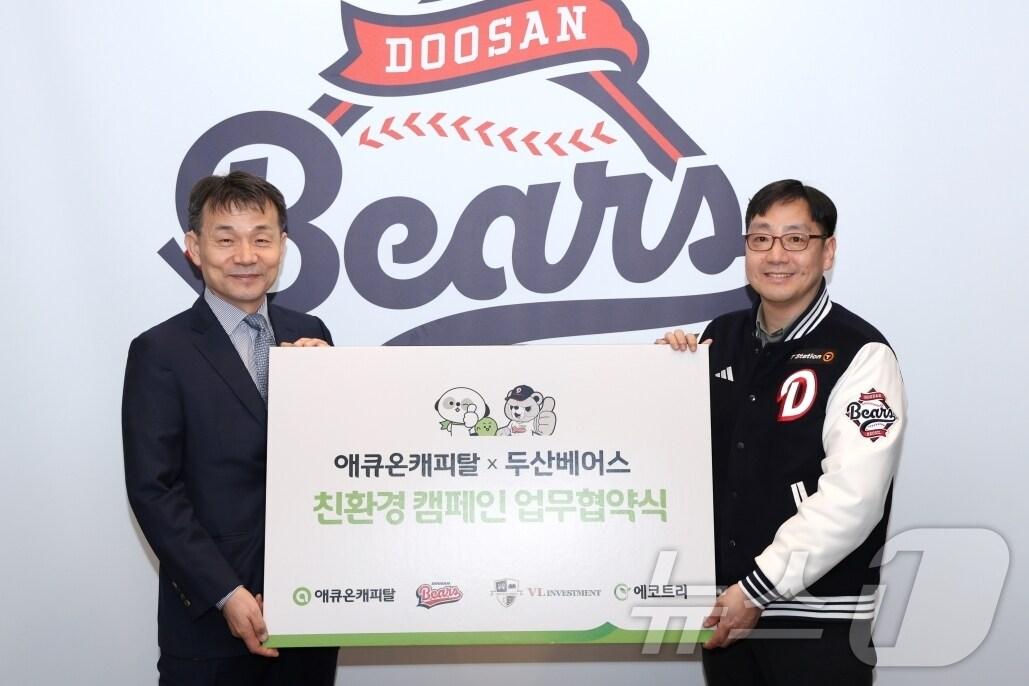 잠실야구장 전광판으로 슈몽이·철웅이가 폐기물 분리방법 안내할 예정지난 19일 서울시 잠실야구장 두산베어스 사무실에서 ‘애큐온캐피탈과 두산베어스가 함께하는 친환경 캠페인’을 위한 업무 협약식이 진행됐다. 애큐온캐피탈 이중무 대표(왼쪽)와 두산베어스 백준호 전무(오른쪽)가 기념사진을 촬영하고 있다./사진제공=애큐온캐피탈박재찬 보험전문기자 '캐셔로' 초능력 물려줘야 한다면 '종신보험' 준비하세요[영화 in보험산책]정문철 KB라이프 대표 "마부정제 자세로 혁신…신뢰받는 행복파트너로”