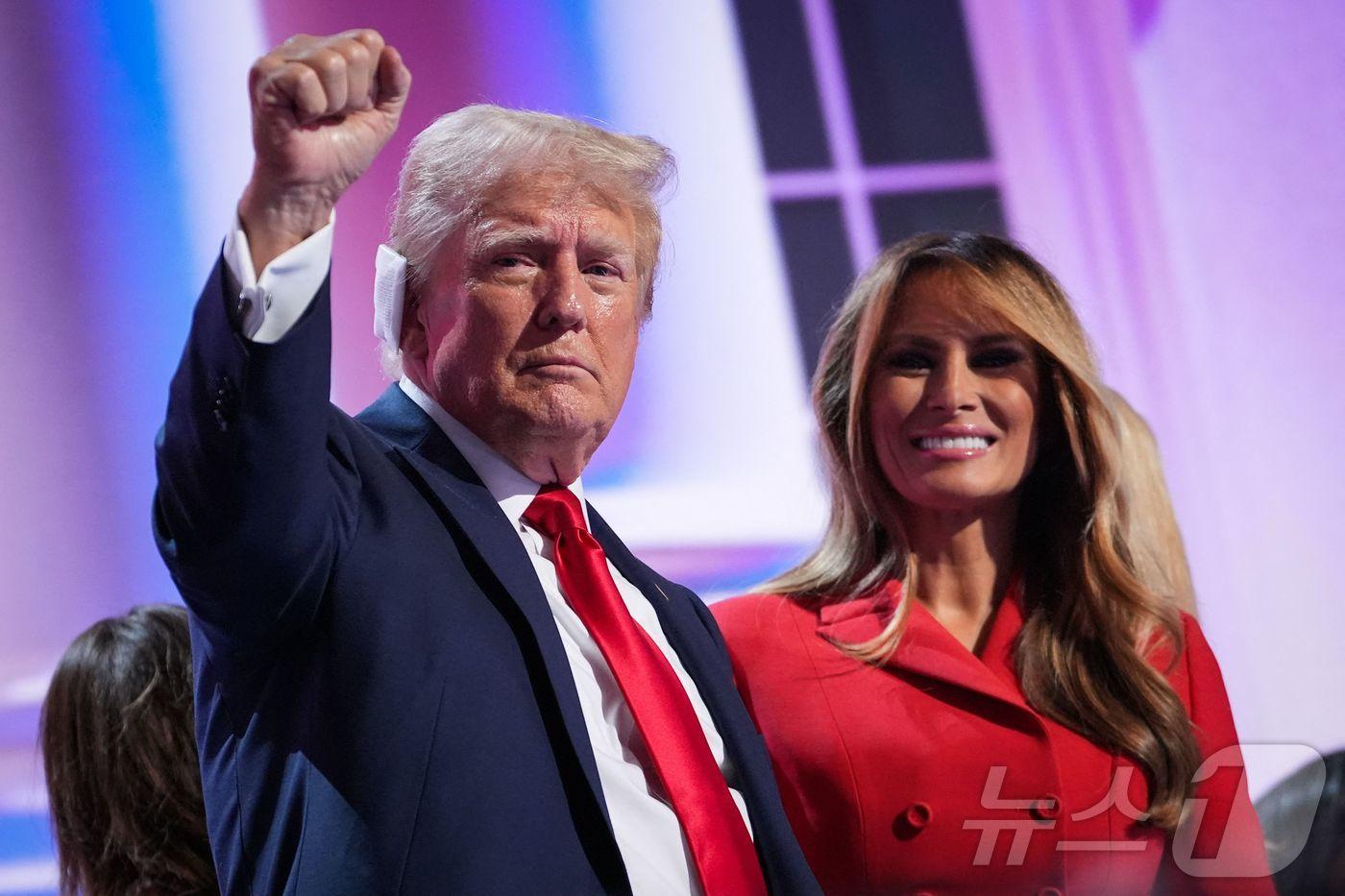 도널드 트럼프(왼쪽) 공화당 대선 후보와 부인 멜라니아(오른쪽) 여사가 18일(현지시간) 미국 위스콘신주 밀워키에서 열린 공화당 전당대회 마지막 날 트럼프의 후보 지명 수락 연설이 끝난 뒤 참석자들에게 인사하고 있다. 2024.07.18. ⓒ AFP=뉴스1 ⓒ News1 장시온 기자관련 키워드기아삼성전자현대차SK하이닉스에코프로비엠관련 기사코스피, 사상 첫 4700선 돌파…기아, 5% 강세[개장시황]'주가 40만원' 돌파한 현대차…그룹주도 신고가 '질주'[핫종목]李 방중 재계 경제사절단 출국…최태원 "좋은 결과 나오길"'보호무역'의 역설…제조업, 피지컬 AI 도입 더 빨라진다삼성전자·SK하이닉스 '최고가' 쌍끌이…코스피, 4220선 탈환[시황종합]