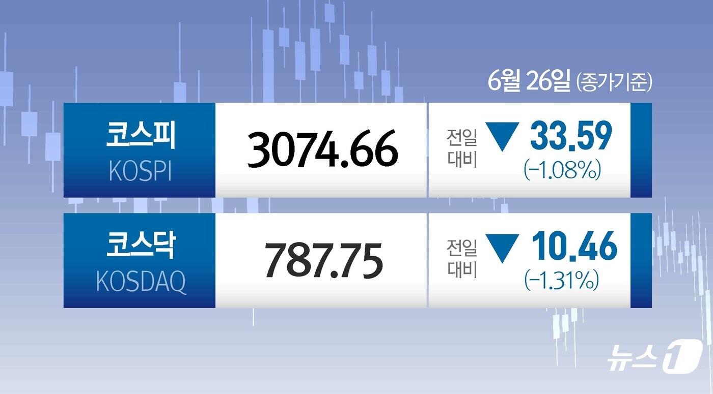 기관·외인 매도 폭탄에 코스피 사흘 만에 하락…3070선 후퇴[시황종합]