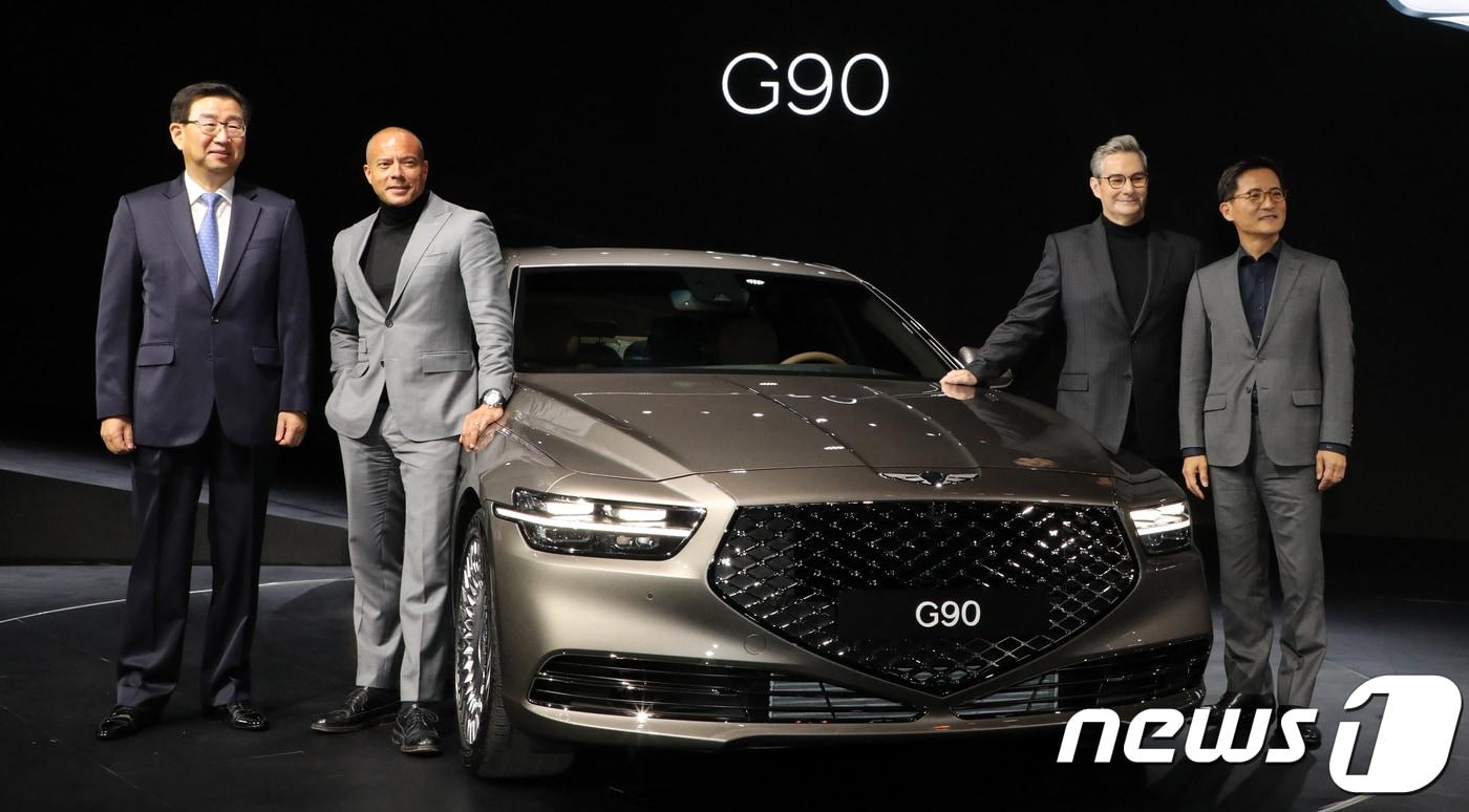 27일 오전 서울 중구 신라호텔에서 제네시스 'G90'이 공개 되고 있다. 현대자동차 고급 브랜드 제네시스의 최상위 세단 'G90'은 2015년 국내에서 선보인 브랜드 첫 플래그십 세단 EQ900의 페이스리프트 모델이다. 판매가격은 3.8 가솔린 7706만원, 3.3 터보 가솔린 8099만원, 5.0 가솔린은 1억 1878만원부터 책정됐다. (현대자동차 제공) 2018.11.27/뉴스1
