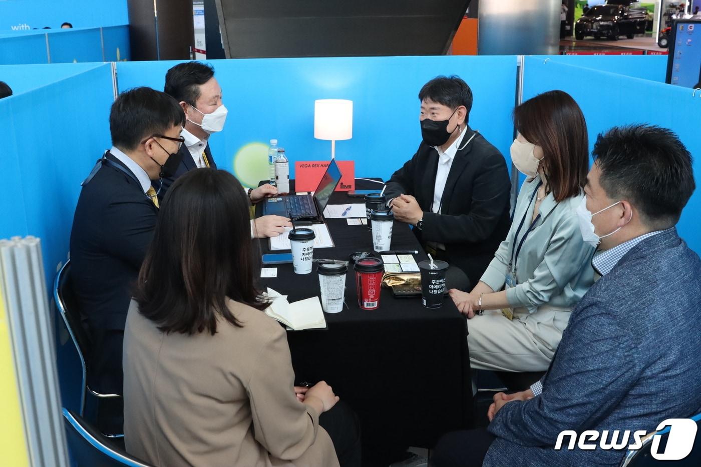 충남 천안아산 강소연구개발특구 연구소기업과 바이어간 컨설팅 상담하는 모습(한국자동차연구원 제공)ⓒ 뉴스1