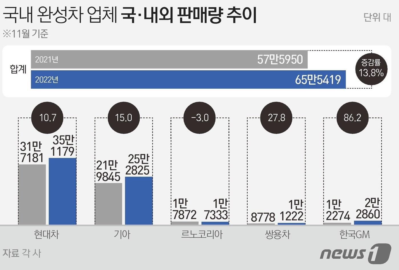 전년比 13.8%↑…반도체 공급난 완화로 생산 증가국내 12만7157대 3.3%↑…해외 52만8262대 16.7%↑ⓒ News1 이지원 디자이너ⓒ News1 이지원 디자이너ⓒ News1 이지원 디자이너이장호 기자 "70조 산업으로의 도약"…아시아 최초 '법률 산업 박람회' 열린다[기자의 눈] 암(癌)과 함께 한 1년…환우들에게 전하고픈 진심이형진 기자 식품산업協, 한중 식품안전협력 MOU 체결에 "적극 환영"CJ프레시웨이, 3년간 중소형 외식고객사 50곳 홍보 지원