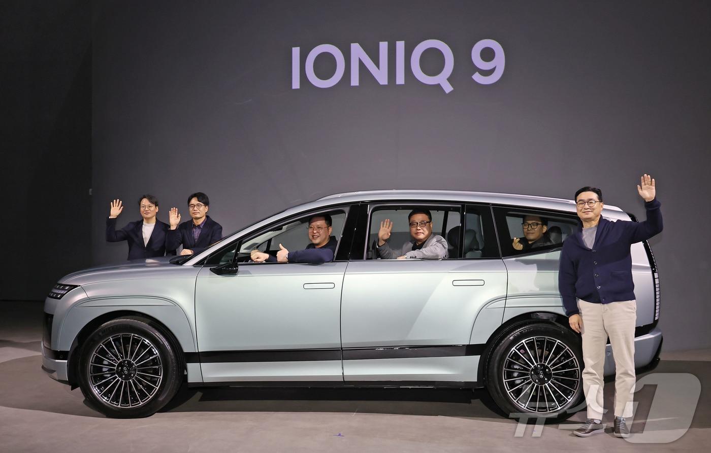 정유석 현대자동차 국내사업본부장 부사장과 개발진들이 지난 11일 오전 서울 광진구 그랜드 워커힐에서 열린 아이오닉9 미디어 익스피리언스 행사에 현대차 전동화 플래그십 대형 SUV '아이오닉9'을 소개하고 있다. 2025.2.13/뉴스1