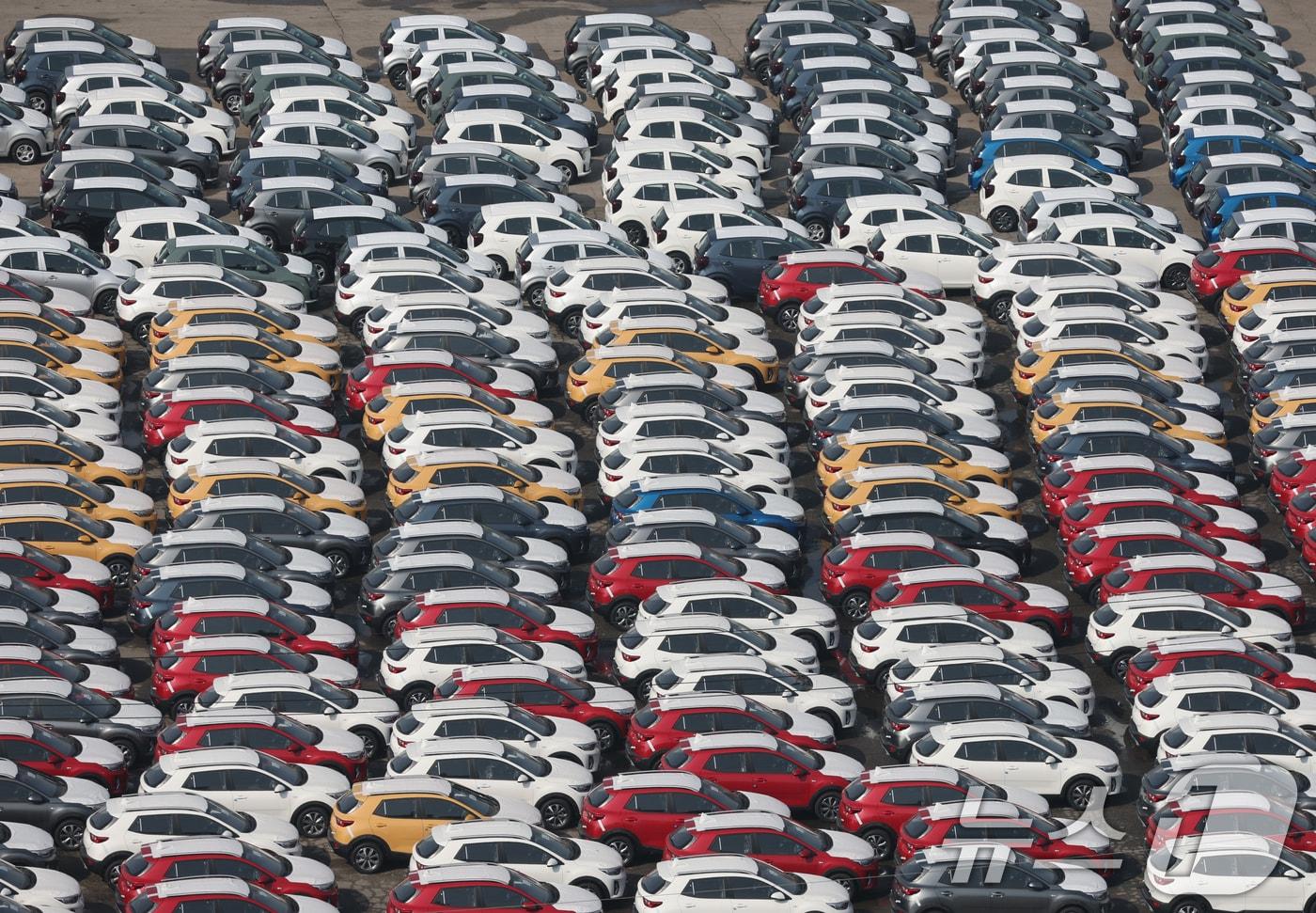 14일 오후 경기 평택시 포승읍 평택항 수출 야적장에 차량이 주차되어 있다. 도널드 트럼프 미국 대통령이 13일(현지시간) 각국의 관세 및 비관세 장벽까지도 두루 고려해 '상호관세'를 부과하는 대통령 각서에 서명했다. '상호관세' 부과 조치는 각국을 상대로 4월 1일 이후 적용될 전망이다. 이에 따라 미국과 자유무역협정(FTA)을 체결했지만, 대미 무역흑자 10위권 안에 드는 한국 역시 상호관세 부과 대상이 될 가능성이 거론된다. 2025.2.14/뉴스1 ⓒ News1 김영운 기자