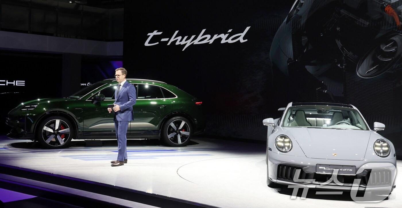 3일 경기도 고양시 킨텍스에서 열린 2025 서울모빌리티쇼에서 포르쉐 뉴 마칸과 신형 911 카레라 GTS가 공개되고 있다. 2025.4.3/뉴스1 ⓒ News1 김명섭 기자