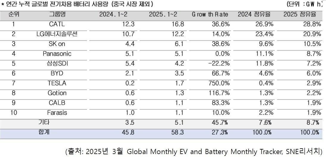 배터리 총사용량 58.3GWh…3사 점유율 38.6%SNE리서치 제공관련 키워드LG에너지솔루션삼성SDI금준혁 기자 與 박정·백혜련 원내대표 출사표…"혼란 수습" "비위 무관용"(종합)與 박정, 원내대표 출사표…"당혼란 수습할 중간계투 요원"관련 기사美 캐즘에 수십조원 공중분해 K배터리…믿을 건 ESS·LFP1조 규모 국내 ESS 2라운드…'지속 가능성' 수주 성패 가른다"美 전기차 줄취소"…K-배터리 타격 현실로, 가격 경쟁력에 사활SK온, 글로벌 생산 캐파 80% '단독 체제'…ESS 전환 대응력 높인다K배터리, 미국서 잇따른 兆단위 ESS용 수주 '잭폿'…中 관세 반사이익