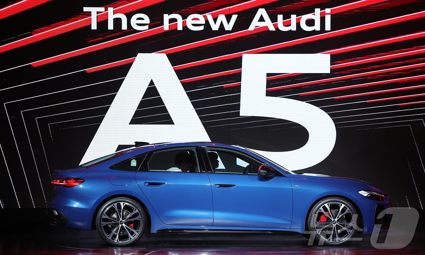1일 서울 영등포구 여의도 콘래드 서울 호텔 그랜드볼룸에서 열린 아우디 신차 공개 행사에서 신형 중형 세단 '더 뉴 아우디 A5'가 공개되고 있다. 2025.7.1/뉴스1 ⓒ News1 김진환 기자
