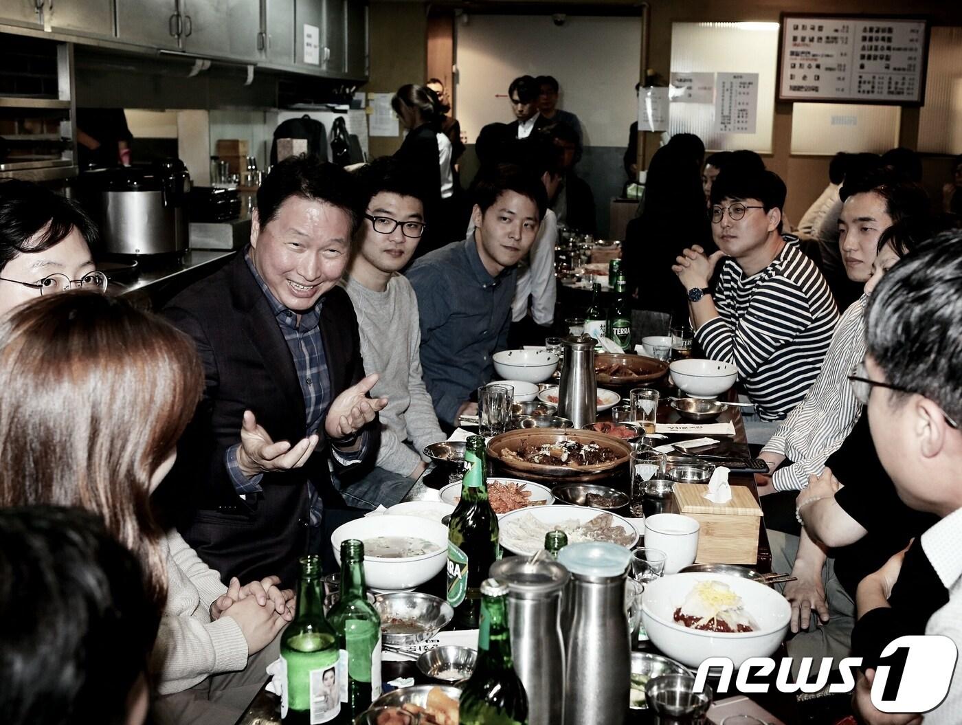 28일 140여 명과 광화문 일대 식당서 '행복토크'최 회장 "회사는 우리다, 우리는 하나다" 건배사최태원 SK그룹 회장이 지난 28일 서울 광화문 인근의 한 대중음식점에서 저녁식사를 겸한 번개 행복토크를 열고 구성원들과 담소를 나누고 있다.ⓒ 뉴스1최태원 SK그룹 회장이 28일 서울 광화문 인근의 한 대중음식점에서 저녁식사를 겸한 번개 행복토크를 열고 구성원들과 함께 사진을 찍고 있다.ⓒ 뉴스1관련 키워드최태원류정민 특파원 '정보유출' 외면한 美의원들 "쿠팡 차별·정치적 마녀사냥" 겁박트럼프 "이란과 모든 회의 취소"…과거 군사작전들 "완벽" 자찬관련 기사전두환 사형, 노태우 무기징역 '417호' 재판정…尹도 사형 구형신유열·서진석·최윤정…전면에 선 K-바이오 2·3세, 빠른 발걸음[2026JP모건 콘퍼런스]첫날부터 빅딜 성공한 中…美 견제 넘고 빅파마 '픽' 선점[2026JP모건 콘퍼런스][르포]K-바이오 '빅딜' 기대감에 설레는 샌프란…"축제가 따로 없네"[기자의 눈]구글·애플 줄세운 'D램의시간'…슈퍼사이클 이후는