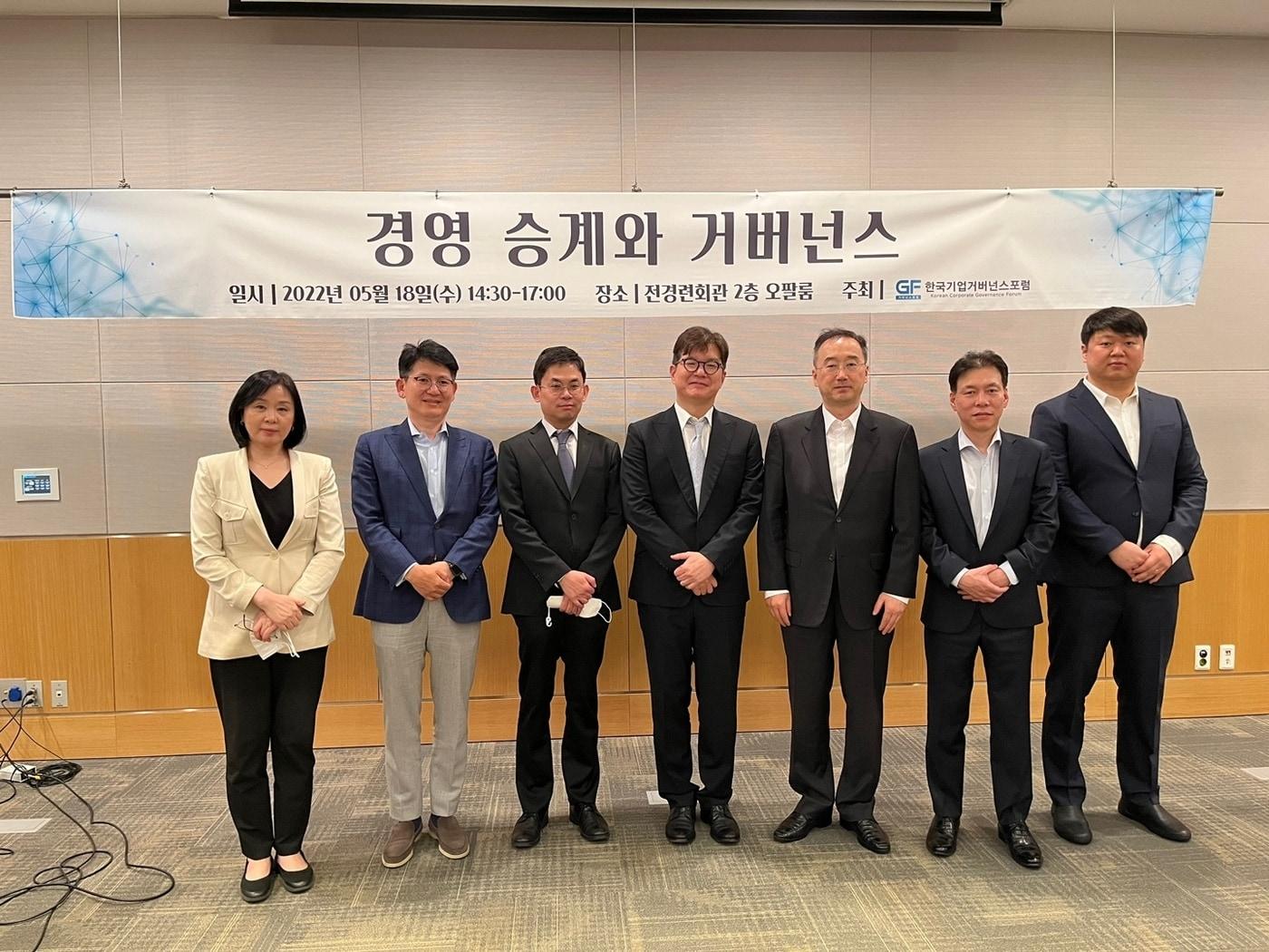 "가족기업 거버넌스 시스템 마련해야"(왼쪽부터) 플레시먼힐러드코리아 박영숙 대표, KCGI 강성부 대표, 한국기업거버넌스포럼 심혜섭 변호사, 퀀티브인베스트먼트 이기봉 대표, 한국기업거버넌스포럼 김규식 회장, 페트라자산운용 용환석 대표, 충북대학교 경영학부 최병철 교수 ⓒ 뉴스1신건웅 기자 "홈플러스 운영 중단 막자"…MBK, 긴급운영자금 대출 1000억 부담이지스운용 "센터필드 매각 예정대로…신세계 주장은 부당한 간섭"