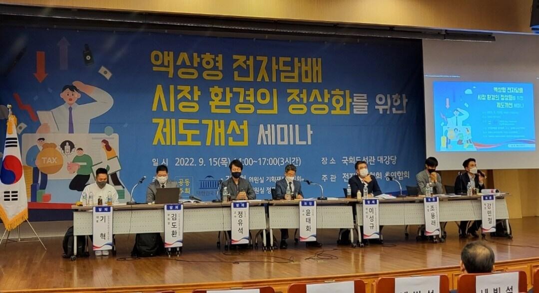 전자담배총연합회 "과도한 세율 불합리, 세수 실패"정부 "현재도 과세 덜 돼"…학계 "세밀한 정책 필요"15일 국회에서 진행된 '액상형 전자담배 시장 환경의 정상화를 위한 제도개선 세미나'에서 토론을 진행하고 있다. ⓒ News115일 국회에서 진행된 '액상형 전자담배 시장 환경의 정상화를 위한 제도개선 세미나'.한지명 기자 서울시, 농업인 역량 향상 위해 '새해 실용교육' 운영무더위·한파 쉼터 개선 논의…"다양한 유형 쉼터 필요"