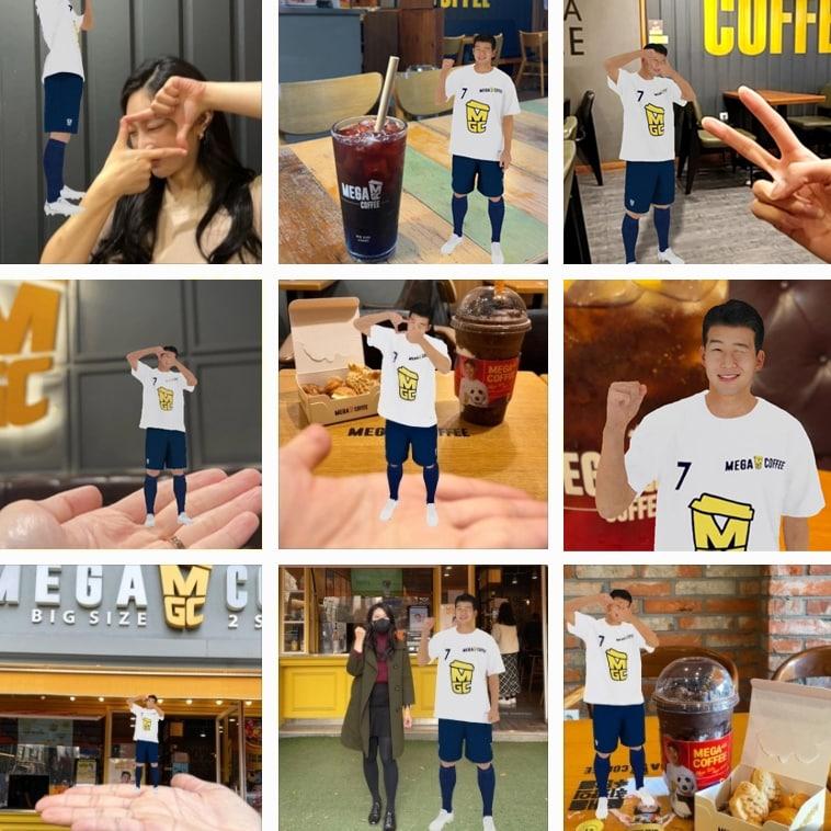 국가대표 손흥민 선수를 활용한 메가커피의 AR인증샷 이벤트.(메가커피 제공)