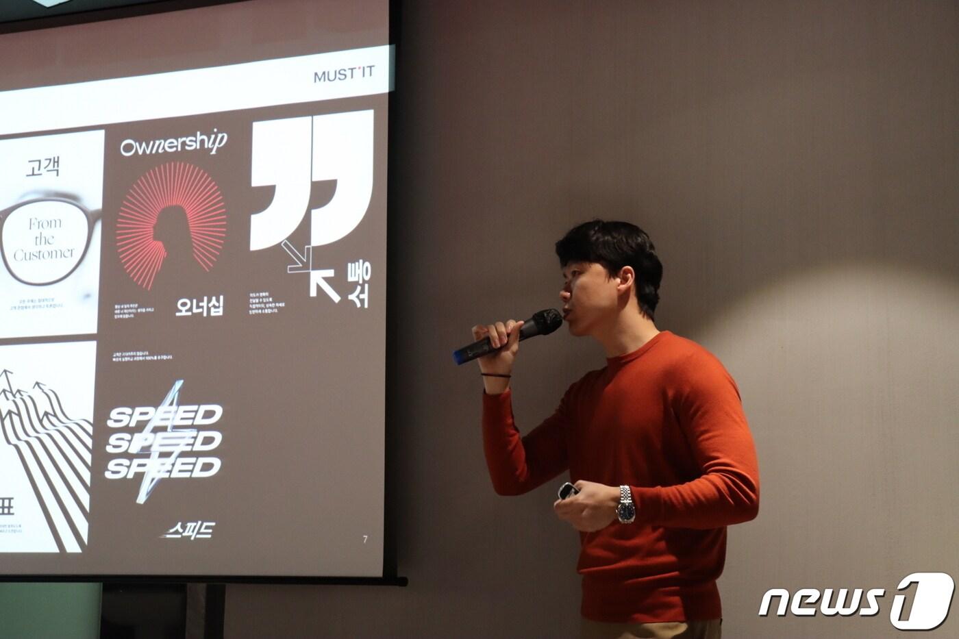 '우리사주조합' 체제 도입 발표조용민 머스트잇 대표가 16일 임직원 대상 타운홀 미팅에서 새로운 조직문화 7가지 원칙을 발표하고 있다.(머스트잇 제공)한지명 기자 서울시, 농업인 역량 향상 위해 '새해 실용교육' 운영무더위·한파 쉼터 개선 논의…"다양한 유형 쉼터 필요"