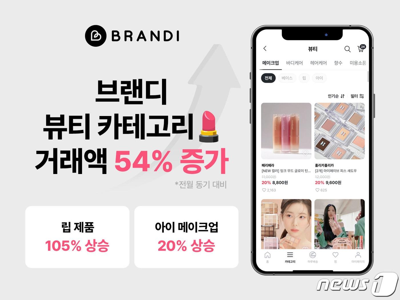 "실내 마스크 해제로 색조 메이크업 상품 수요 급증"브랜디는 3월1~15일 기준 뷰티 카테고리 거래액이 전월 동기인 2월1~15일 대비 54% 증가했다고 밝혔다.(브랜디제공)관련 키워드브랜디뷰티틴트화장품김진희 기자 젠틀몬스터 "세계 4대 패션 도시 진출…올해도 글로벌 확장"한일정상회담서 포착된 李 대통령 '운동화'…또 완판 되나