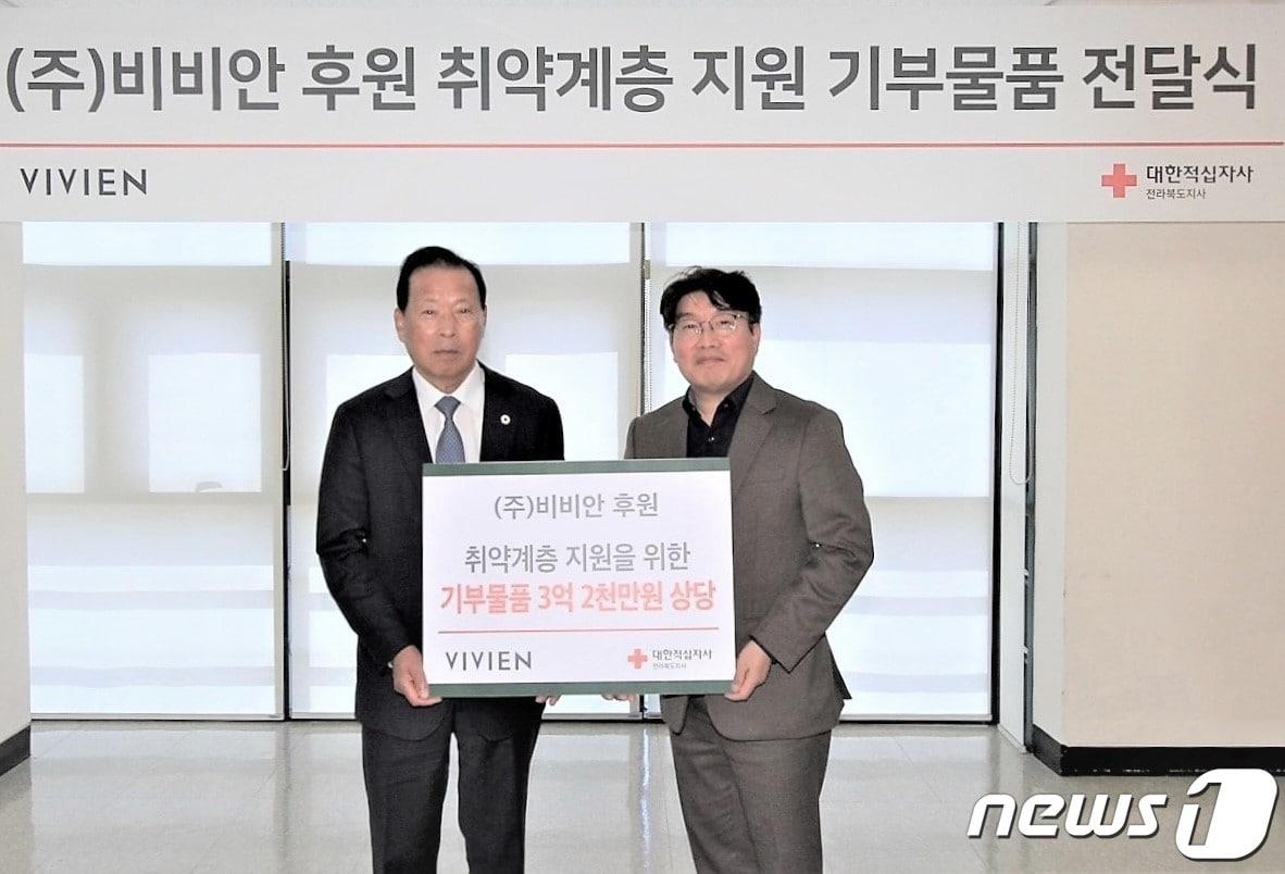 한적십자사 전북지사에 마스크·양말·스타킹 등 자사 제품 전달윤의식 비비안 부사장(오른쪽)과 이선홍 대한적십자사 전북지사 회장이 지난달 26일 대한적십자사 전북지사에서 기부식을 갖고 기념촬영을 하고 있다.(비비안제공)관련 키워드비비안김진희 기자 노스페이스 애슬리트팀 이영건, '2026 청송 아이스클라이밍 월드컵' 동메달마뗑킴, 케이스티파이와 두 번째 협업…글로벌 완판 신화 잇는다관련 기사덴마크 총리 "운명의 순간 처해…그린란드 위협 단호 대처해야""英·獨, 트럼프 그린란드 병합 위협에 나토 파병 카드 만지작"트럼프 야욕·그린란드 독립 열망에 덴마크 고민 깊어진다트럼프 '그린란드 야욕' 현실로…유럽 반발 속 덴마크와 내주 담판美국무 "내주 덴마크와 그린란드 논의…군사옵션 배제 안해"(종합)