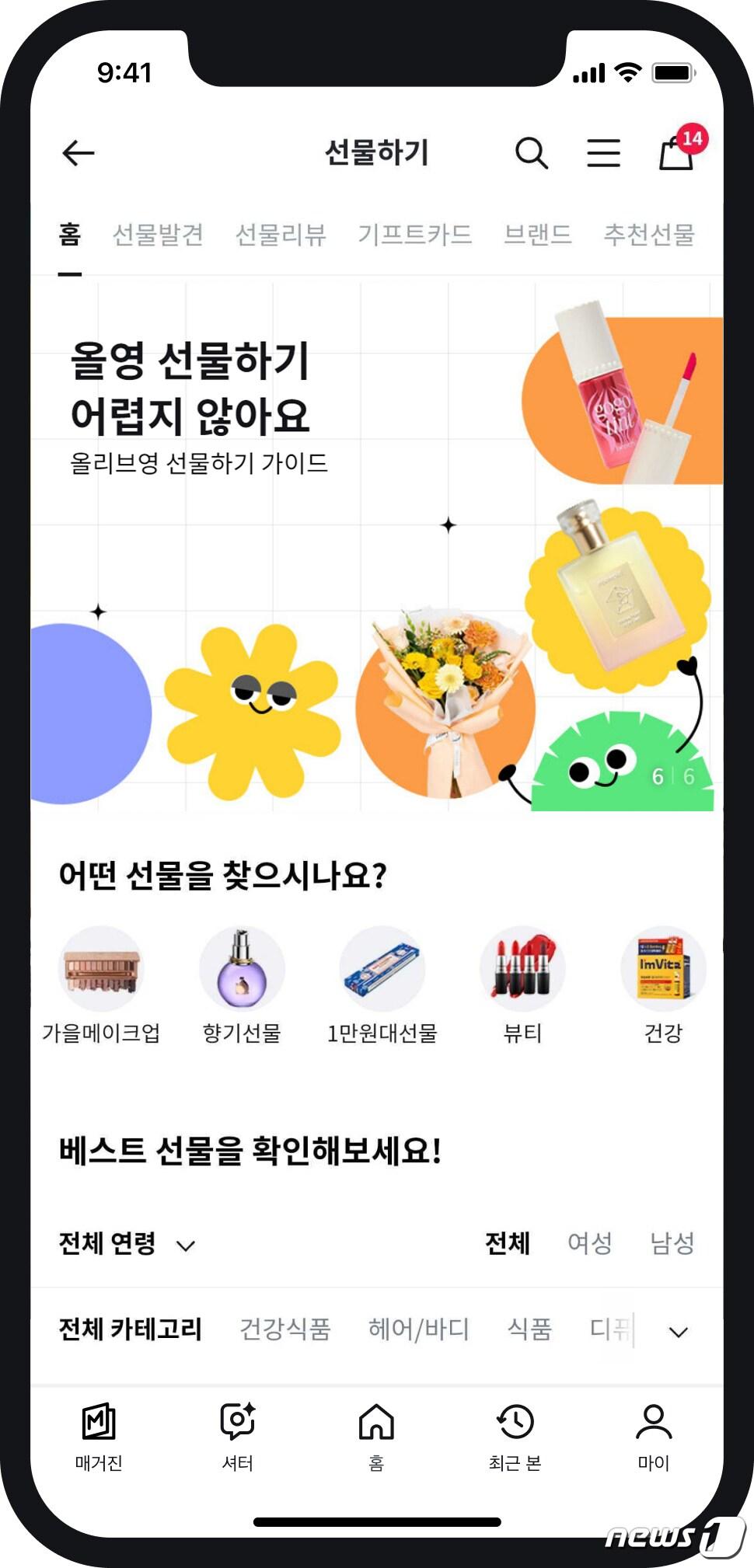'2020년 론칭' 올리브영 선물하기 서비스 연평균 176%↑올리브영 선물하기를 이용하는 4050세대가 증가하는 추세다.(올리브영제공)관련 키워드올리브영김진희 기자 리복, 2026 패션 트렌드 '컬러 블로킹' 반영한 간절기 아우터 공개'한예슬 샴푸' 모에브, CJ온스타일 론칭관련 기사울산 유일 시내면세점 13년 만에 폐업…"고환율에 적자 누적"'한예슬 샴푸' 모에브, CJ온스타일 론칭무신사 회원 전용 케이뱅크 통장·체크카드 나온다…은행·유통 협력 강화올리브영 아니고 '온리영'…간판·인테리어 그대로 베낀 中드디어 정식 데뷔…알디원, 2026년 '최고 신인' 등극 도전 [N이슈]