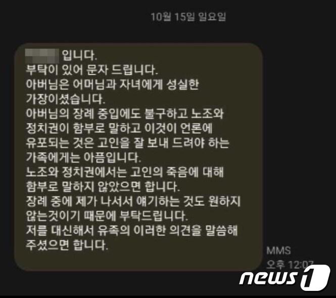 고인 유가족이 고인과 위탁계약을 체결한 A물산 대표에게 보낸 당부 문자 메시지.(A물산제공)장도민 기자 원텍, 작년 경영 성과 보상으로 전 직원에 연봉 20% 성과급 지급패치·임플란트·입에 넣는 필름까지…'먹는 위고비' 다음은 제형 전쟁