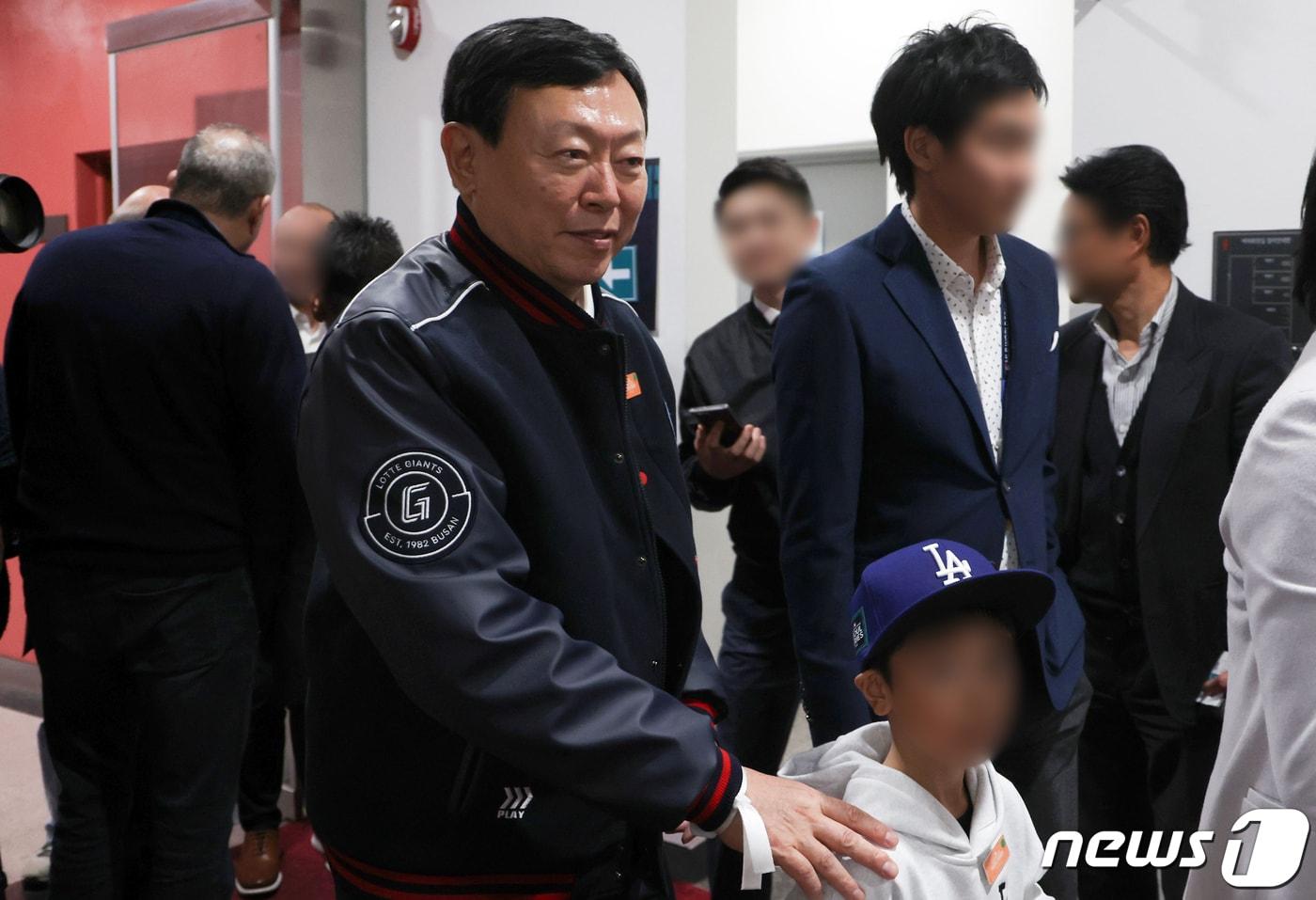 신동빈 롯데그룹 회장이 20일 서울 고척스카이돔에서 열린 미국프로야구(MLB) 공식 개막전 LA 다저스 vs 샌디에이고 파드리스 1차전 경기를 관람하기 위해 경기장으로 들어서고 있다. (공동취재) 2024.3.20/뉴스1 ⓒ News1 김진환 기자